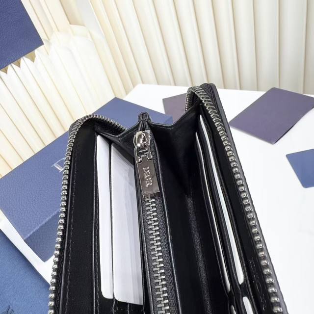 Highest quality, original, authentic, and original edition on the market. Guaranteed imported top-grain cowhide, no split or microfiber leather. Long zipper wallet. Black grained cowhide leather with the Cd Icon logo. Ref: 2Esbc252Cdi_H00N. This long zipper wallet is understated yet elegant. Crafted from black grained cowhide leather, it features the Cd Icon logo on the front. A central zippered pocket holds coins, while dual cash compartments and 12 card slots provide ample storage. Elegant and spacious, it's the ideal everyday companion.