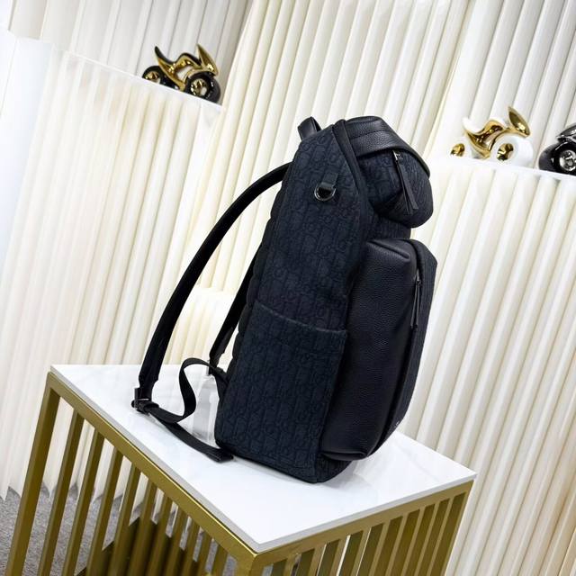 Highest quality, original, authentic, and original on the market. Guaranteed imported top-grain cowhide, no split leather or microfiber. Rider Soft Zip Backpack. Black Oblique print fabric and black grained cowhide leather. Code: 1Esba229Yks_H03E. This Rider Soft Zip Backpack, a new addition to the Fall 2025 menswear collection, combines stylish design with practical functionality. Expertly crafted from black Oblique print fabric and other materials, it's enhanced with tonal grained cowhide leather details and embellished with the Dior logo. It features a spacious zippered compartment, interior slip pockets, two front zippered pockets, and two side slip pockets for storing everyday essentials. A D-ring allows for accessories. The adjustable padded shoulder strap adds a refined touch, making it the ideal everyday companion.