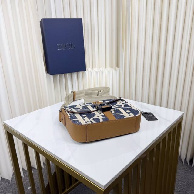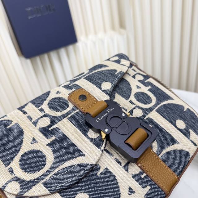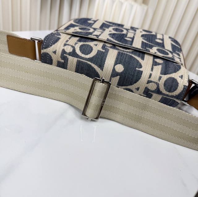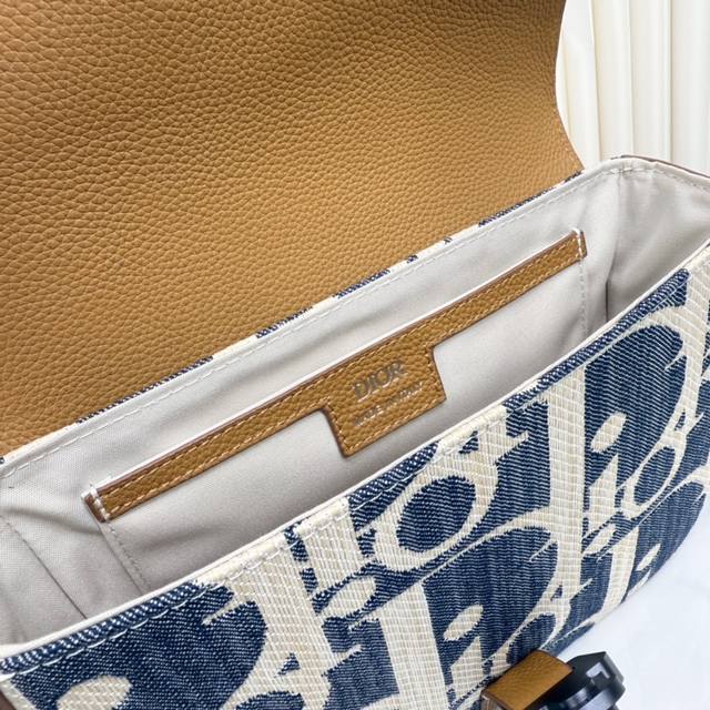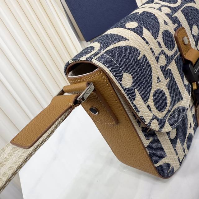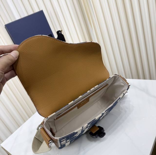 Highest quality original model on the market. Guaranteed imported top-grain cowhide, no split leather or microfiber. Saddle Messenger Bag. Blue and beige raffia-effect oblique print denim paired with brown grained cowhide leather. Ref: 1Adpo398Rom_H567. This Saddle Messenger Bag is stylish and sophisticated. Crafted from raffia-effect oblique print denim and other materials, it features blue jacquard embroidery and contrasting beige stitching, creating a new interpretation of a Dior classic. It's detailed with brown grained cowhide leather and features a saddle flap embellished with an aluminum buckle for added style. The spacious interior includes a slip pocket for everyday essentials, and the adjustable herringbone-patterned shoulder strap enhances the look, allowing it to be carried on the shoulder or crossbody.