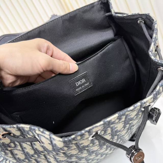 Highest quality original on the market, authentic and original. Guaranteed imported top-grain cowhide, no split leather or microfiber. This Dior Hit The Road flap backpack blends modern style with Dior's couture spirit. Crafted from apricot Oblique print fabric and other materials, it's enhanced with tonal grained cowhide leather details. The front is embellished with the Dior signature. The flap is fastened with a mini aluminum buckle with the CD logo and two nylon jacquard straps embellished with the Christian Dior logo. The interior features a spacious main compartment and two side magnetic flap pockets. This versatile and practical backpack complements any casual look.