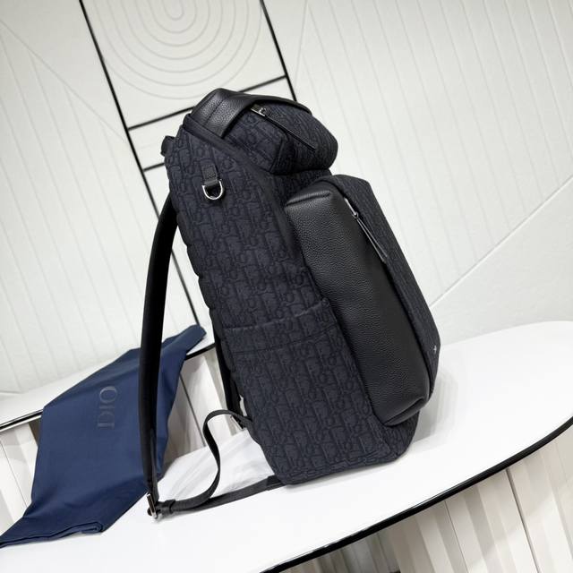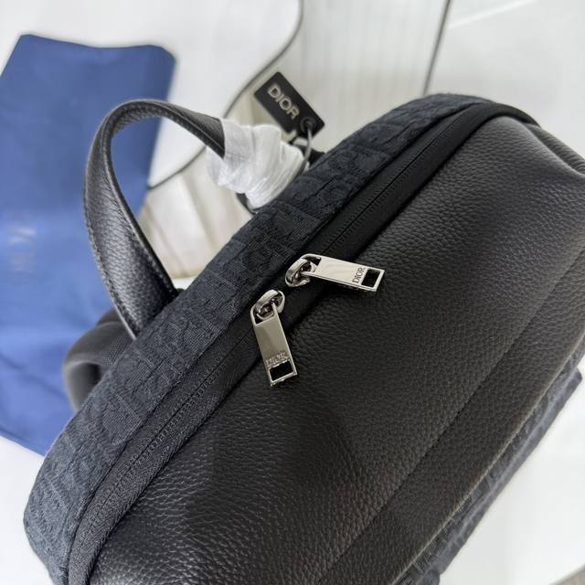 Highest quality original product on the market. Guaranteed imported top-grain cowhide, rejecting split leather and microfiber leather. Rider Soft Zipper Backpack. Black Oblique printed fabric and black grained cowhide leather. Item number: 1Esba229Yks_H03E. This Rider Soft zipper backpack is a new addition to the Fall 2025 menswear collection, combining stylish design with practicality. Crafted from black Oblique printed fabric and other materials, it is adorned with tonal grained cowhide leather details for added style and Dior logo accents. It features a wide-opening zippered compartment, an interior slip pocket, two front zippered pockets, and two side slip pockets for storing various everyday items. A D-ring allows for hanging accessories. Adjustable padded shoulder straps add a touch of sophistication, making it an ideal everyday companion. DDD Body: Cotton, technical fabric, cowhide leather DDD Lining: Technical fabric, cotton, cowhide leather DDD Zippered main compartment DDD Flat internal laptop compartment DDD Internal slip pocket DDD 2 front zippered pockets DDD 2 side slip pockets DDD D-ring for hanging accessories DDD Top leather handle DDD Adjustable padded shoulder strap DDD Padded mesh back with Dior logo DDD Metallic copper Dior logo on the front DDD Embossed Dior logo inside DDD Includes dust bag DDD Dimensions: 32 x 46 x 17.5 cm (L x H x W) DDD The main compartment can hold one 15-inch laptop, A4 documents, and one tablet DDD