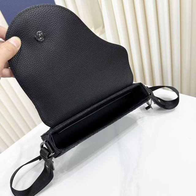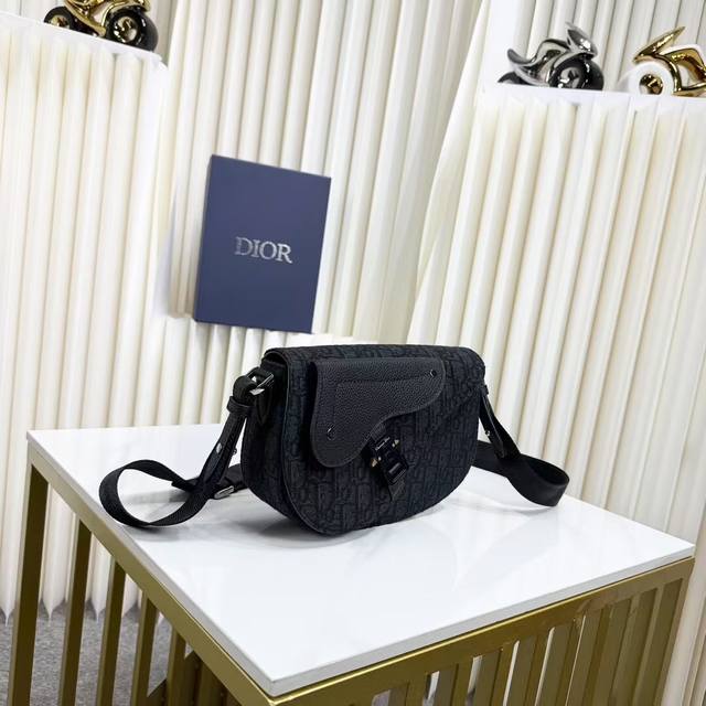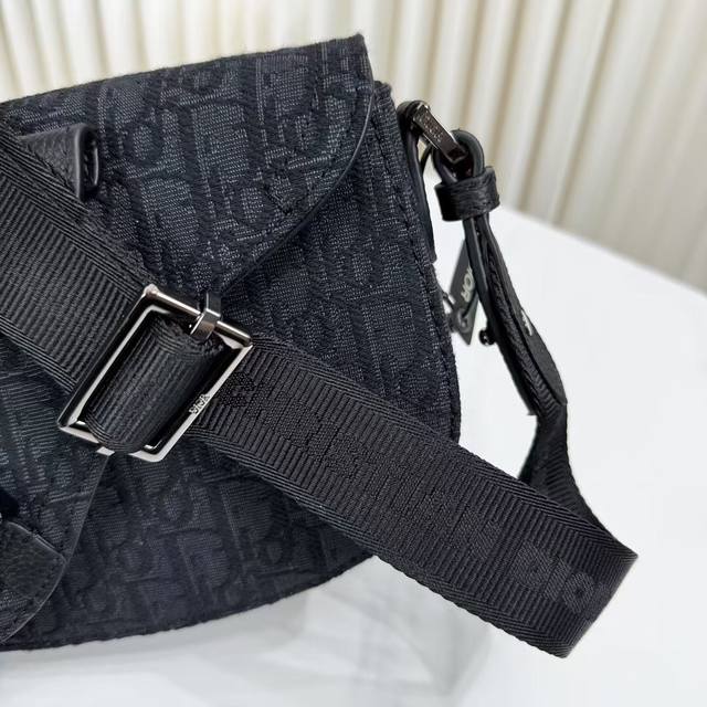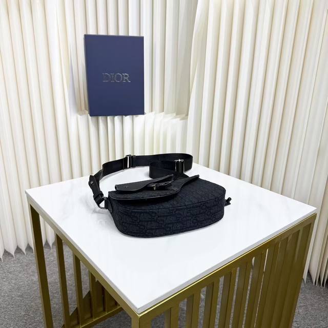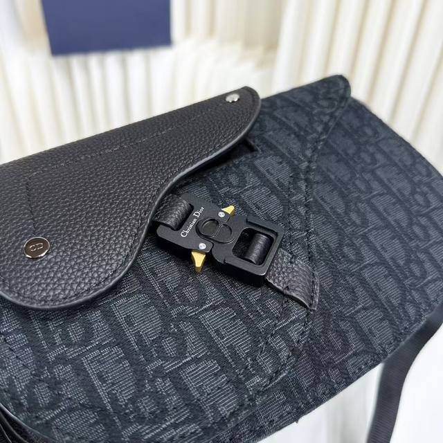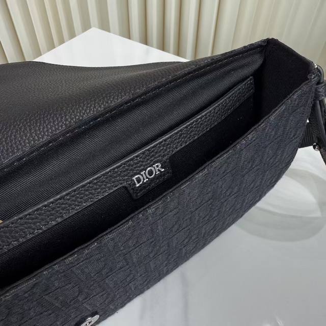 Item Number: 1Adpo325Yky_H03E. This Saddle Messenger bag is a new addition to the Fall 2024 menswear collection, exquisite and stylish. Crafted from black Oblique printed fabric, it features a tonal grained cowhide leather saddle flap and an aluminum buckle for added sophistication. The spacious interior includes a slip pocket for everyday essentials and comes with an adjustable Christian Dior nylon jacquard shoulder strap for shoulder or crossbody wear.