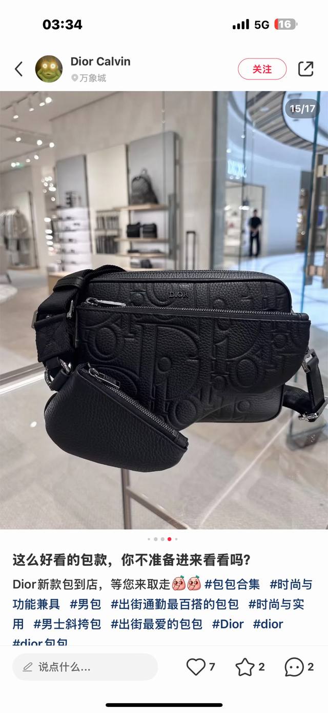 Highest version on the market, imported top-grain cowhide, welcome to compare. DDD Saddle Three-Piece Handbag DDD Black Dior Gravity Printed Leather and Black Grained Cowhide DDD Item Number: 1Adpo276Llg_H00N DDD This Saddle Three-Piece Handbag features a striking and versatile design. The Dior Gravity printed leather uses an embossing technique to exquisitely present the classic pattern on black cowhide leather, showcasing the superb craftsmanship of the Dior atelier. The three-in-one design features the Dior logo on the front, a zippered main compartment, a front saddle clutch, and a mini saddle clutch, both of which are detachable. Practical design, it comes with an adjustable and detachable shoulder strap for shoulder or crossbody wear. DDD Body: Cowhide leather, technical fabric DDD Lining: Technical fabric, cotton, cow leather DDD Zippered main compartment DDD Detachable zippered saddle clutch at the front DDD Adjustable, detachable Christian Dior nylon jacquard shoulder strap with a detachable zippered mini saddle bag and lobster clasp DDD Front adorned with a metal-coated brass Dior logo DDD Interior adorned with an embossed Dior logo DDD Includes a dust bag DDD Made in Italy DDD Dimensions: 23 x 16 x 4 cm (L x H x W) DDD Can accommodate various phone sizes DDD Shoulder strap length: 88 x 133 cm DDD Shoulder strap tip to bag tip length: 38 x 59 cm DDD