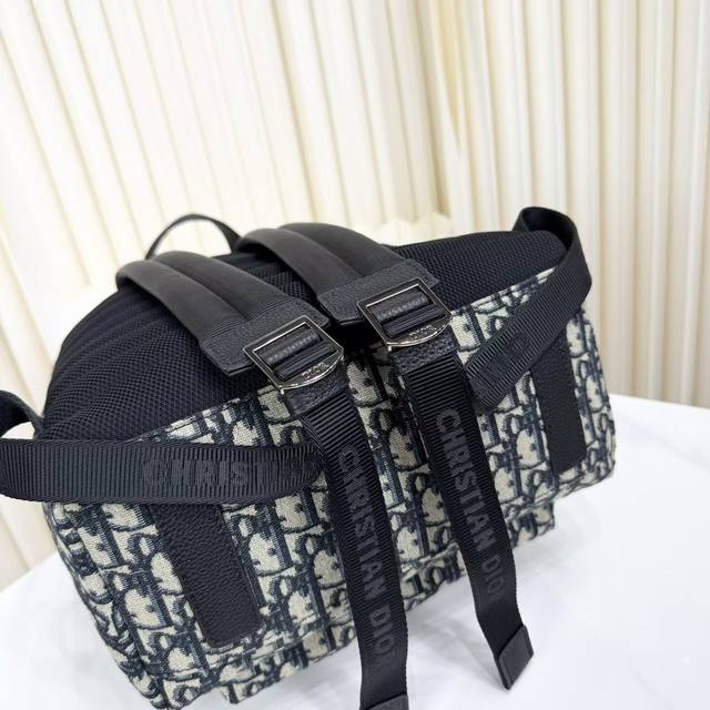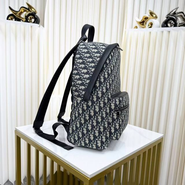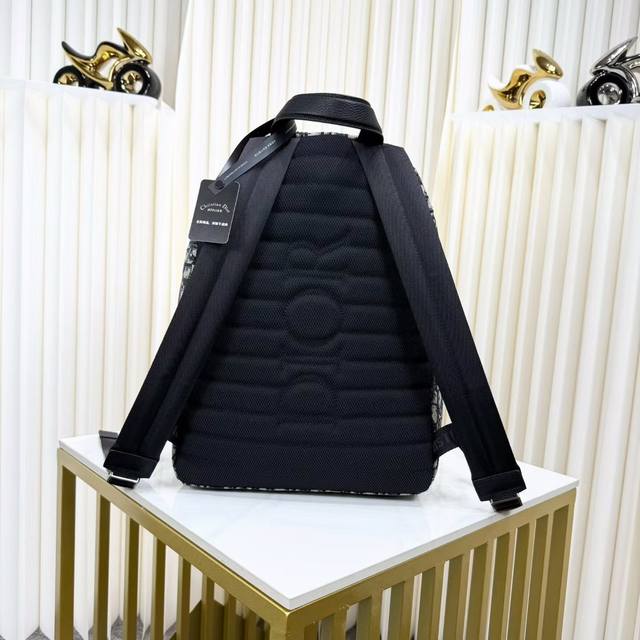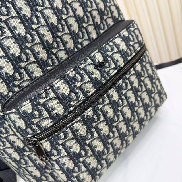 Highest-quality, original, and authentic version on the market. Guaranteed imported top-grain cowhide, no split leather or microfiber. Rider Backpack. Beige and black Oblique print fabric. Item No. 1Voba088Yky_H28E. This Rider backpack offers a clean silhouette, a classic preppy silhouette with a vibrant touch. Sleek and modern, it's crafted from beige and black jacquard fabric embellished with an Oblique print. Continuing the classic design, it features refined details like a two-way zipper closure, a large front zippered pocket, and adjustable padded shoulder straps, making it an ideal everyday backpack.