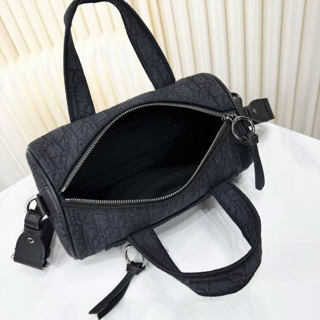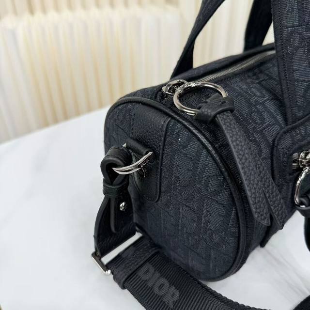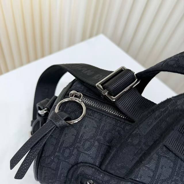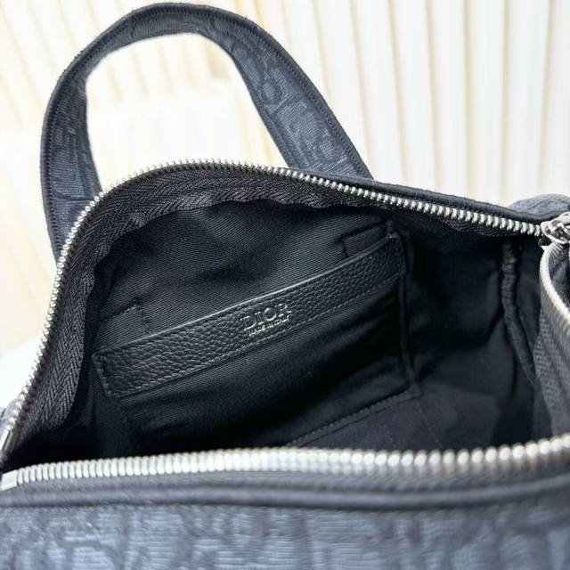 Zippered Messenger Bag. Black Oblique print fabric and black grained cowhide leather. Item No.: 1Espo397Yjz_H03E. This zippered messenger bag, a new addition to the Fall 2025 men's collection, blends stylish Dior details with a classic silhouette. Expertly crafted from black Oblique print fabric, it's accented with tonal grained cowhide leather details and the Dior logo for a touch of class. It features spacious compartments and a front zippered pocket for everyday essentials. The Oblique print top handle and adjustable, detachable shoulder strap allow for comfortable hand, shoulder, or crossbody carry.