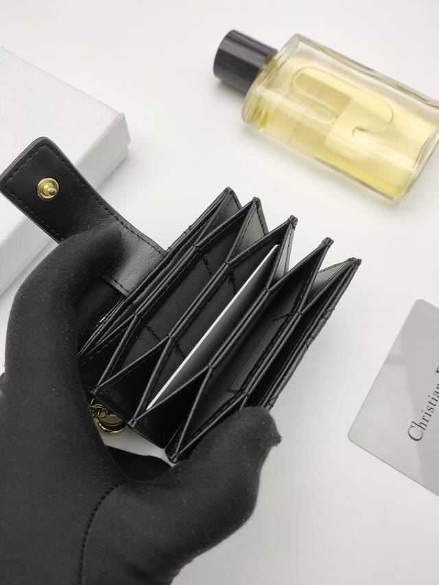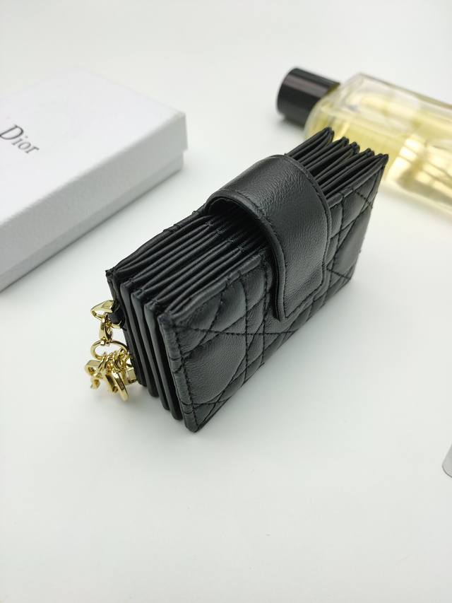 Lady Dior lambskin cannage card holder with 5 compartments and a classic and chic gold Dior charm. Style number: 006-1. Lambskin size: 10.5*6*3cm.