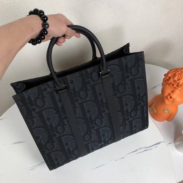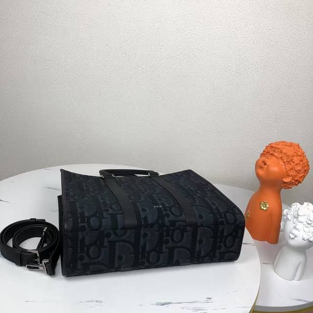 Market's Highest Version, Welcome To Compare. This East-West Handbag Is A New Release From The 2024 Spring Men's Collection, Embodying Timeless Elegance. Crafted From Black Oversized Oblique Print Fabric, Adorned With