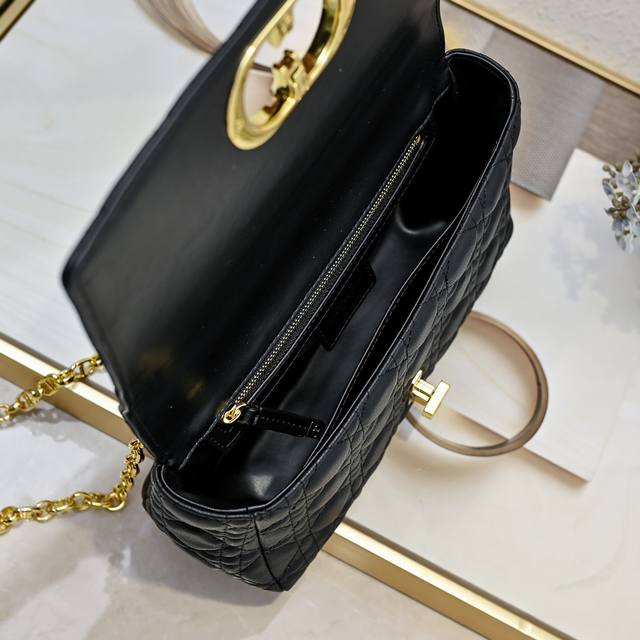Medium (25cm) - Dior new five-compartment lacquer leather bag with a lambskin lining, featuring a shoulder strap with silver hardware, and an adjustable thin shoulder strap. Can be carried by hand, over the shoulder, or crossbody. Model number 9797