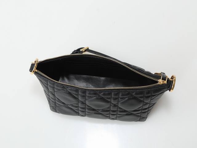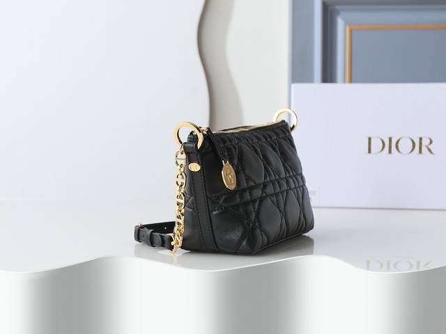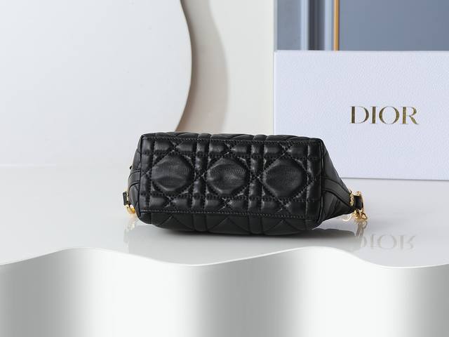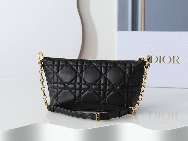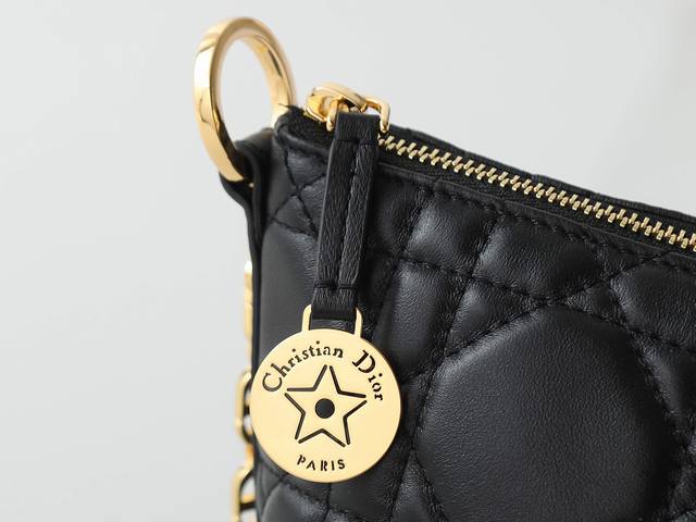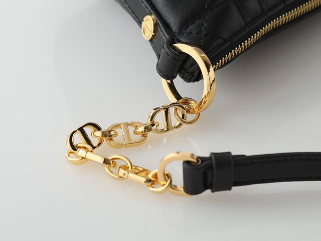 Model No. 3202 Black sheepskin Diorstar Hobo chain handbag, zipper closure, internal card slot, adjustable CD chain shoulder strap, and leather shoulder strap, size: 22Cm-14.5Cm-10Cm