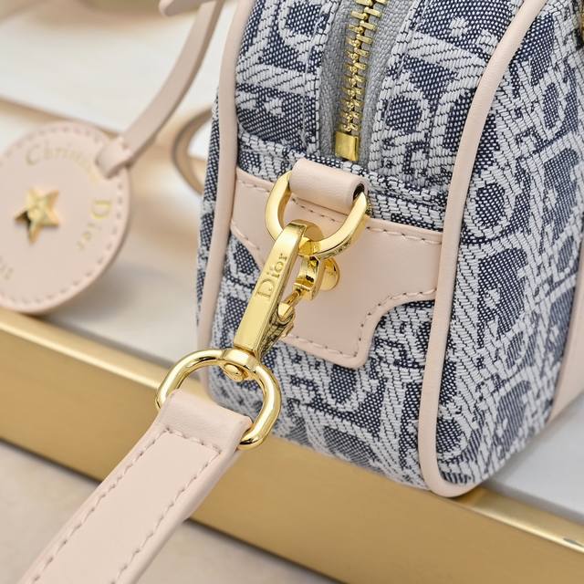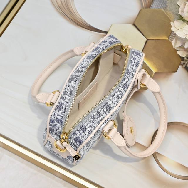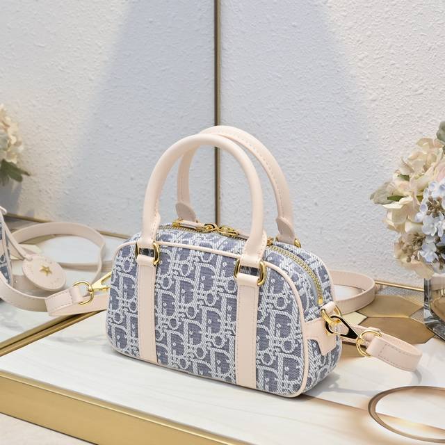 D-Vibe small bowling bag, featuring a casual sporty style. Crafted from blue Obliaue printed fabric, it's exquisite and chic, boasting an impressive capacity that easily accommodates a water bottle, phone, and cosmetics. Size: 20.5*13*5cm