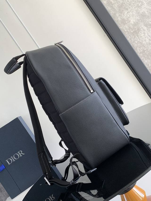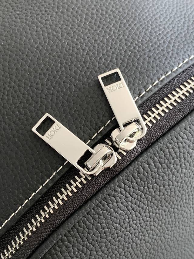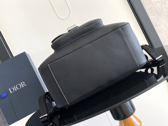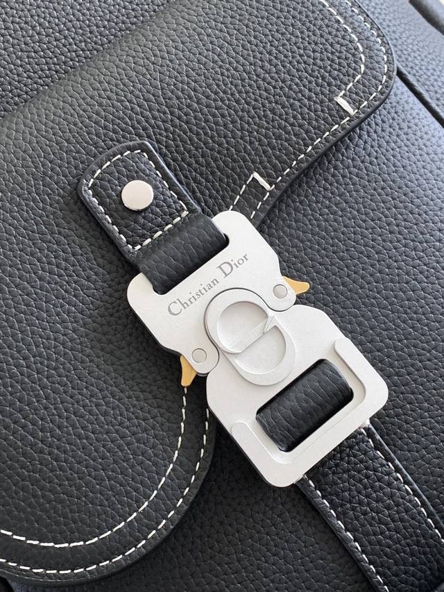 Original Background. This saddle-style zip-up backpack is a new addition to the 2024 Winter Men's Collection, featuring a stylish original design that highlights the saddle style. Crafted from black grained cowhide leather with contrasting stitching, it offers ample space with one compartment for everyday essentials. The front saddle flap pocket, adorned with a Christian Dior logo buckle, can hold a wallet, keys, earphones, or a phone for easy access. Practical and versatile, it's the perfect finishing touch to any outfit. Body: Cowhide leather, technical fabric Lining: Technical fabric, cowhide leather Main zippered compartment Interior flat laptop compartment Front flap pocket with Dior logo buckle Two side slip pockets Leather top handle Adjustable padded shoulder strap Padded mesh back with Dior logo Interior with Dior embossed logo Dimensions: 33 x 43.5 x 19.5 cm Item Number: 1Adba212Ykk_H00N