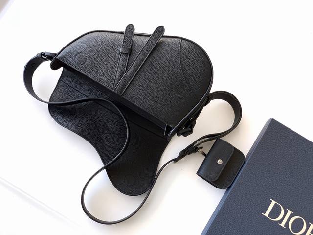 Original factory background. This saddle bag debuted at the Dior Winter 2025 show, reinterpreting the classic design with a fashionable silhouette. Made of soft black grained calfskin, it features a classic magnetic flap for added sophistication, a spacious interior compartment, and a zip pocket for practicality. The adjustable, detachable shoulder strap with a D-ring allows for hanging various accessories, and it can be comfortably worn crossbody or carried by hand. Dimensions: 26 x 17 x 5 cm (Length x Height x Width). Item Number: 1Adpo413Uc