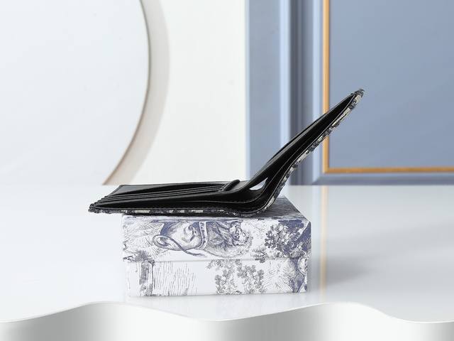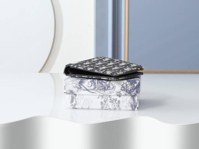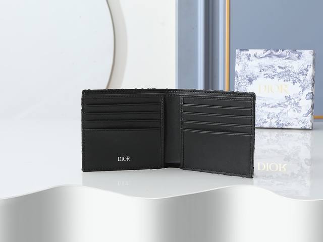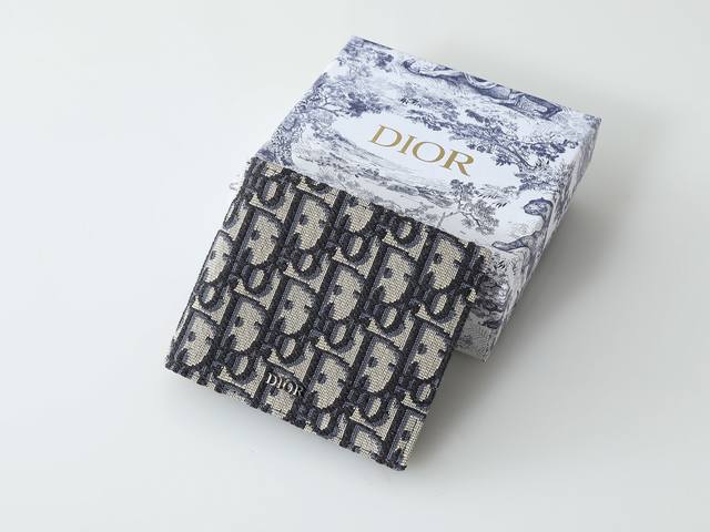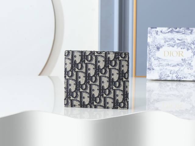 Style 027 Crafted from beige and black Oblique printed fabric, with a Dior signature in copper alloy on the front, two flat compartments and eight card slots, bi-fold style, dimensions: 11.5cm-9.5cm