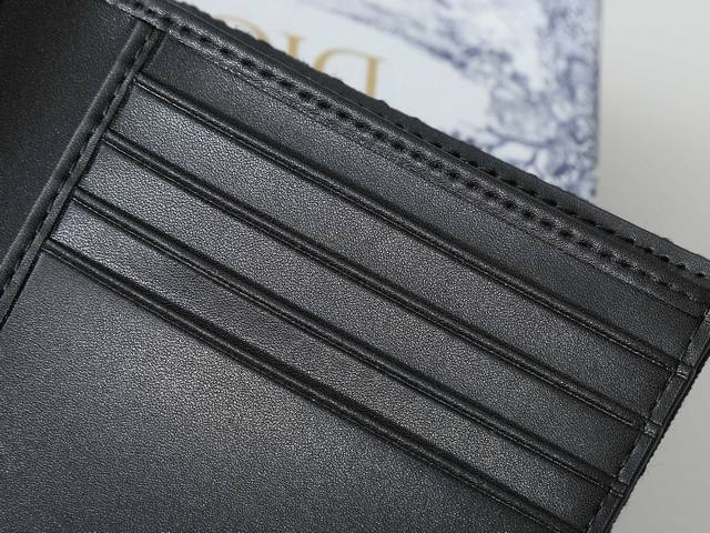 Style 027 Crafted in black and black Oblique print fabric, with a Dior signature in copper alloy on the front, two flat compartments and eight card slots, bi-fold style, size: 11.5cm-9.5cm