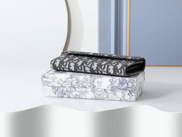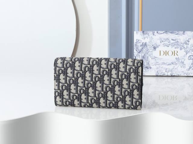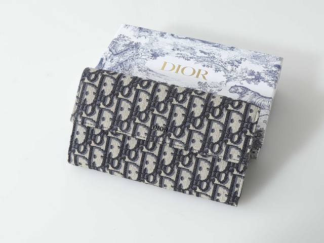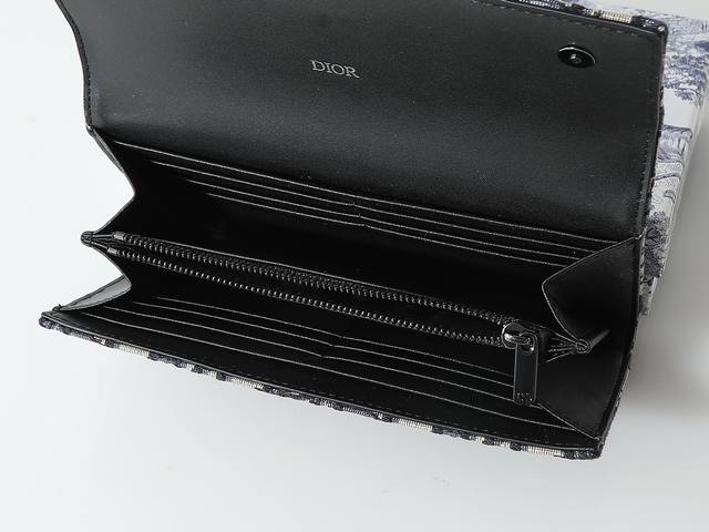 Style 312 Beige printed fabric, metal Dior logo on the front, flap and central zip pocket, 14 card slots. Size 19.8Cm-11Cm-4Cm