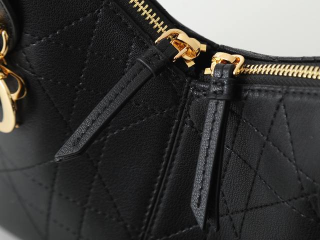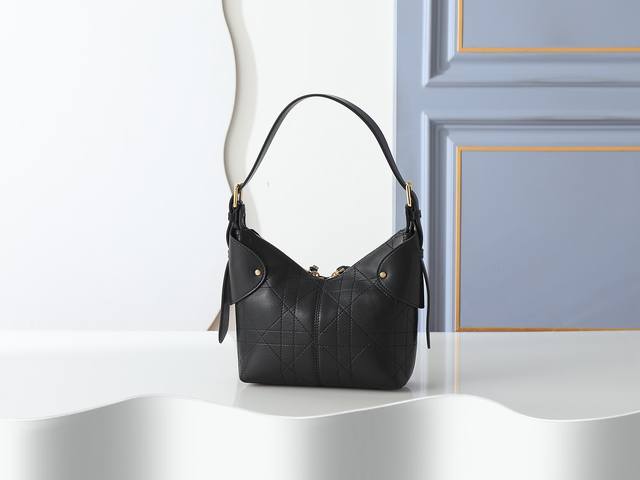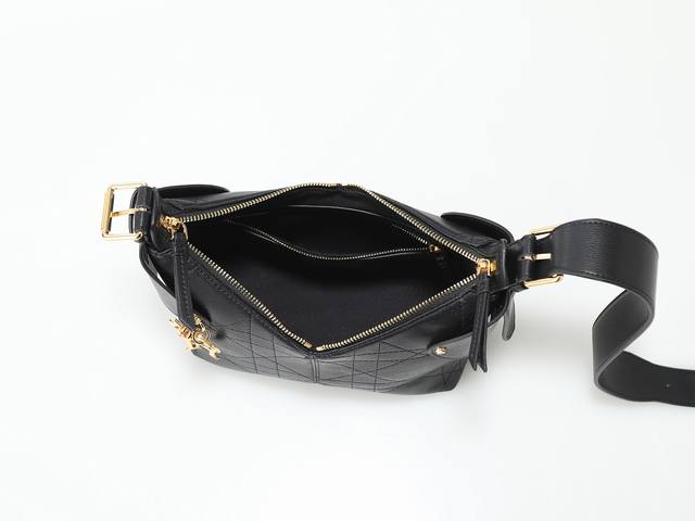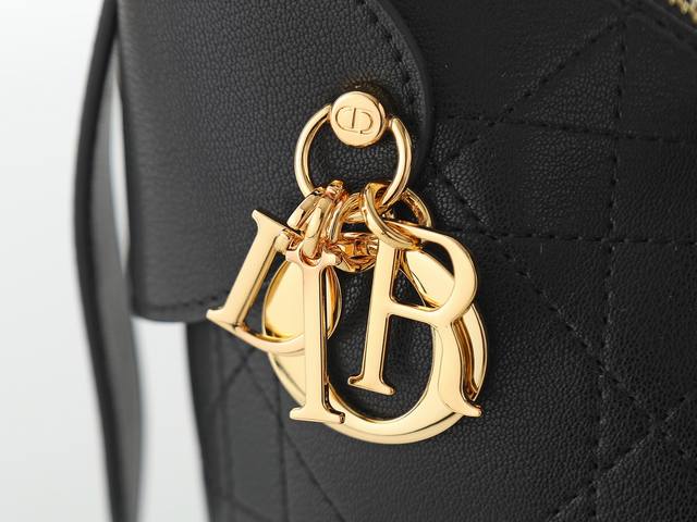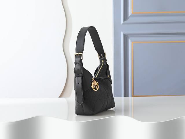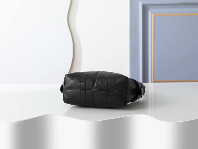 Style No. 2845 Small Black Dior Voyage Handbag is crafted from black pleated calfskin and features flat, oversized cannage stitching. The main compartment has a secure, practical two-way zip closure, and the top handle has an adjustable buckle. It can be carried over the shoulder, making it an ideal everyday accessory. Dimensions: 22cm-15cm-9.5cm