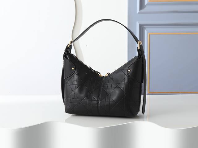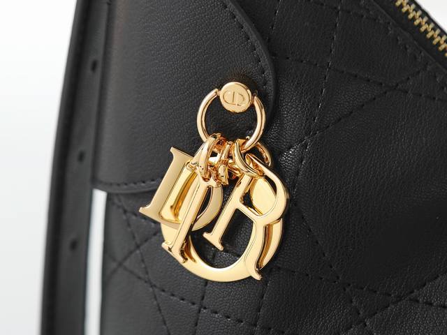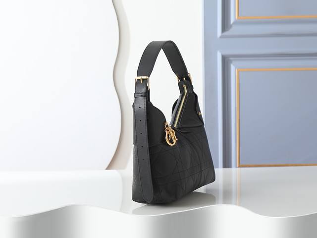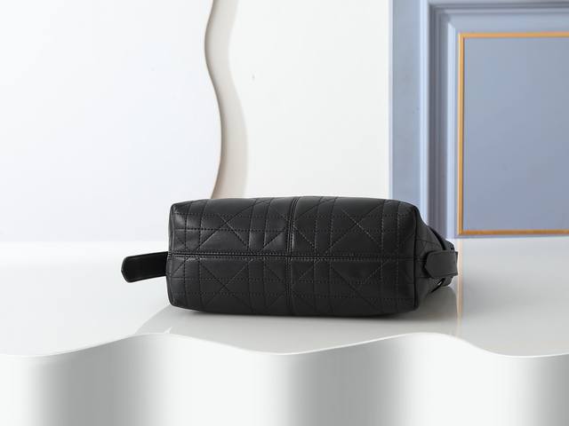 Style No. 2846 Medium Black Dior Voyage Handbag is crafted from black pleated calfskin and features flat, oversized cannage stitching. The main compartment has a secure, practical two-way zip closure, and the top handle has an adjustable buckle. It can be carried over the shoulder, making it an ideal everyday companion. Dimensions: 28cm-18cm-12cm