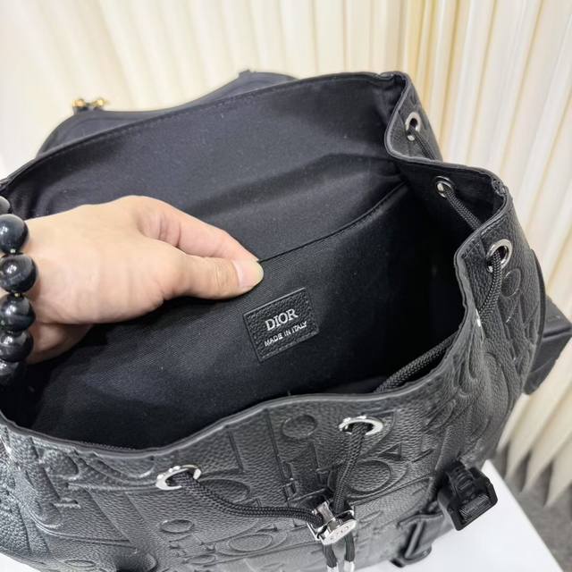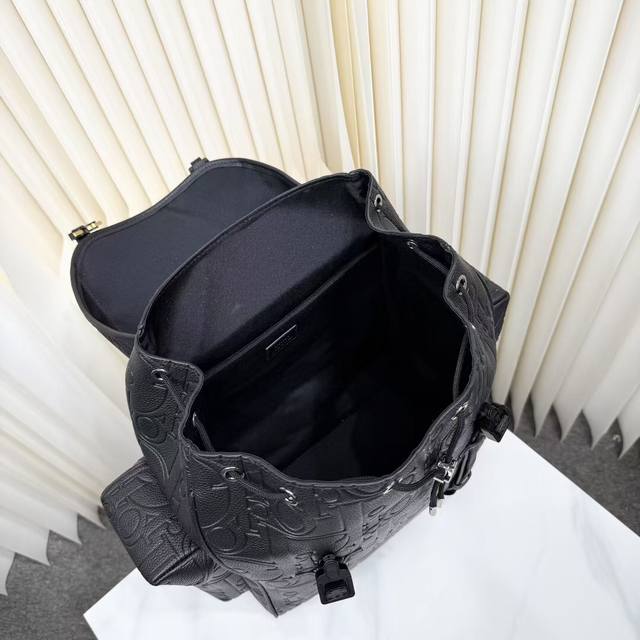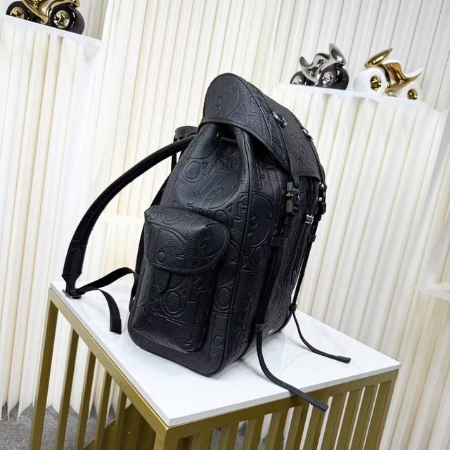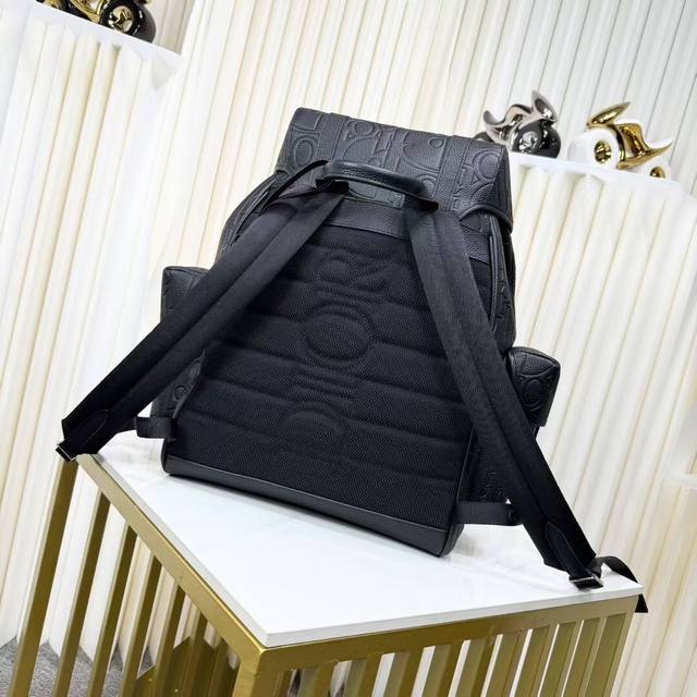 The highest quality, original, and authentic version on the market. Guaranteed imported top-grain cowhide, no split leather or microfiber. This Dior Hit The Road flap backpack blends modern style with Dior's couture spirit. Dior Gravity print-effect leather uses an embossed technique to delicately depict the iconic motif on black cowhide, accented with black grained cowhide details. The Dior signature is embellished on the front, showcasing the exquisite craftsmanship of the Dior ateliers. It features two nylon jacquard straps with the Christian Dior signature, a spacious main compartment with flap, and two side magnetic flap pockets. This practical design complements a variety of casual looks.