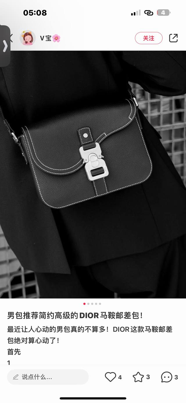 This Saddle Messenger Bag Is Exquisite And Fashionable. It Is Carefully Crafted From Black Grained Cowhide Leather. It Is Equipped With A Saddle Flap Decorated With Aluminum Buckle Closure. The Interior Compartment Is Spacious And Has A Back Slip Pocket To Store Various Daily Necessities. The Small Style Is Equipped With An Adjustable Leather And Christian Dior Logo Jacquard Shoulder Strap, Which Can Be Carried On The Shoulder Or Crossbody.