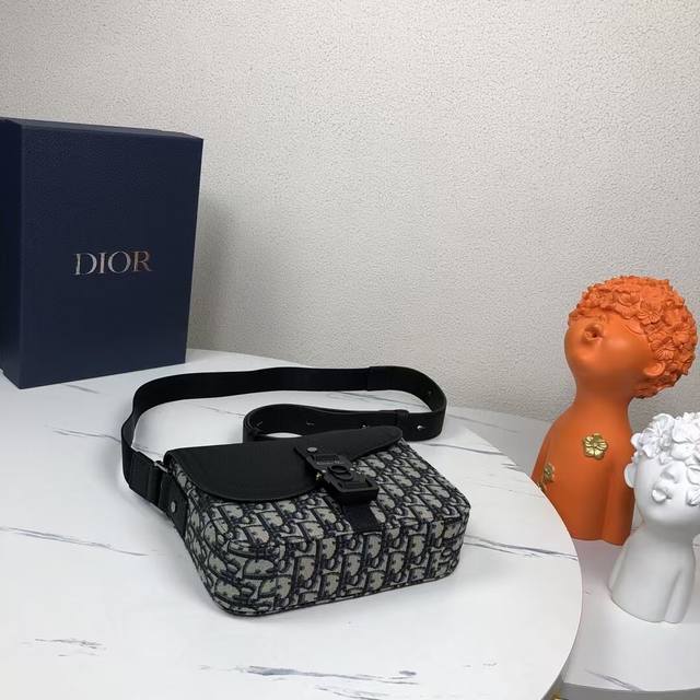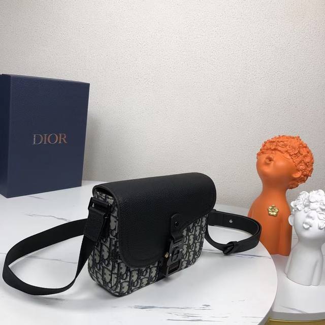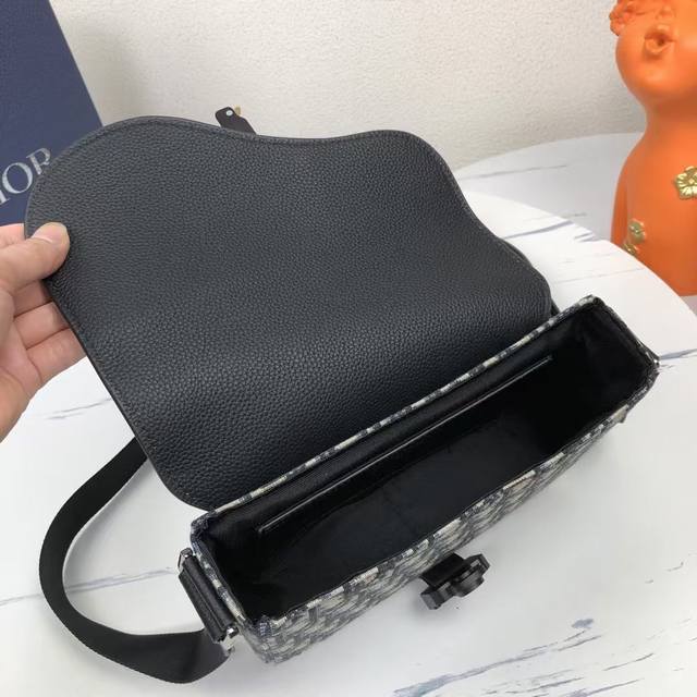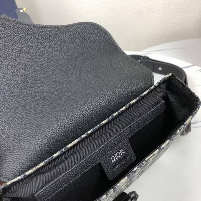 This saddle bag with shoulder strap is a new product this season, exquisite and fashionable. Decorated with beige and black Oblique prints, the grained cowhide leather flap highlights the saddle outline and is embellished with aluminum buckles. The spacious internal compartments are equipped with patch pockets to accommodate various daily necessities. Mini style, with adjustable leather and Christian Dior logo jacquard shoulder strap, can be carried on the shoulder or crossbody.
