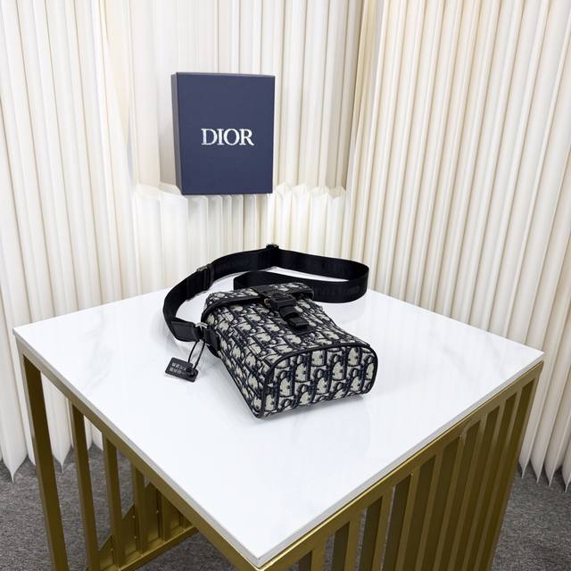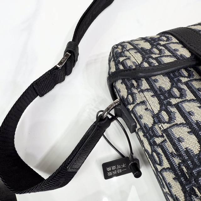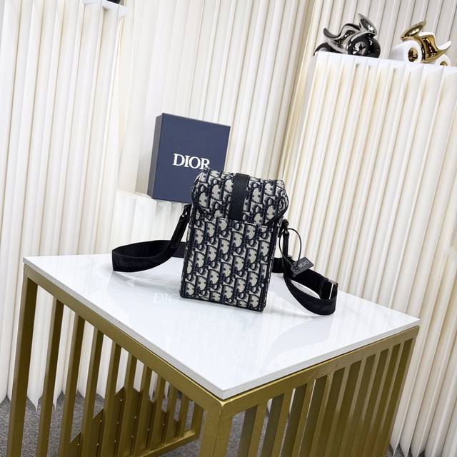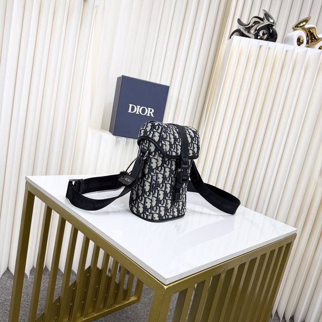 This vertical flap messenger bag is a new product in the 2025 summer men's collection. The modern and fashionable design fully highlights Dior's haute couture style and enhances the style of the Dior Hit The Road series. It is carefully crafted with materials such as beige and black Oblique printed fabric, decorated with black grained cow leather details to enhance the style, and decorated with the Dior logo on the front. The flap is decorated with aluminum buckles and embellished with the initials of Cd, with a main compartment and a slip pocket. The mini style, with an adjustable shoulder strap, can add a finishing touch to various casual outfits.
