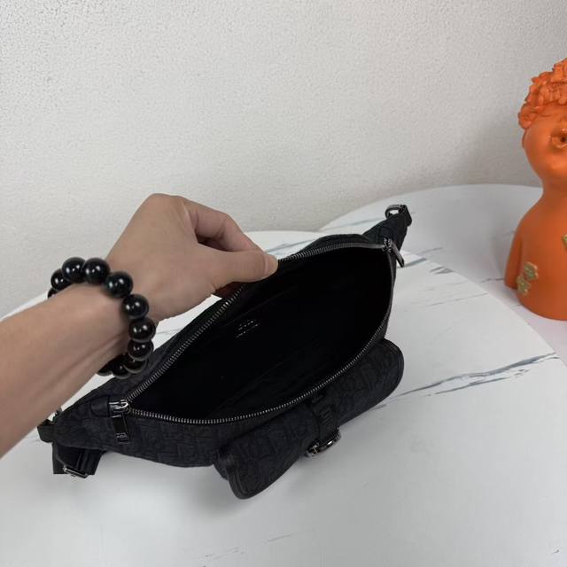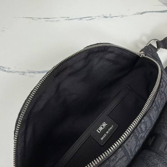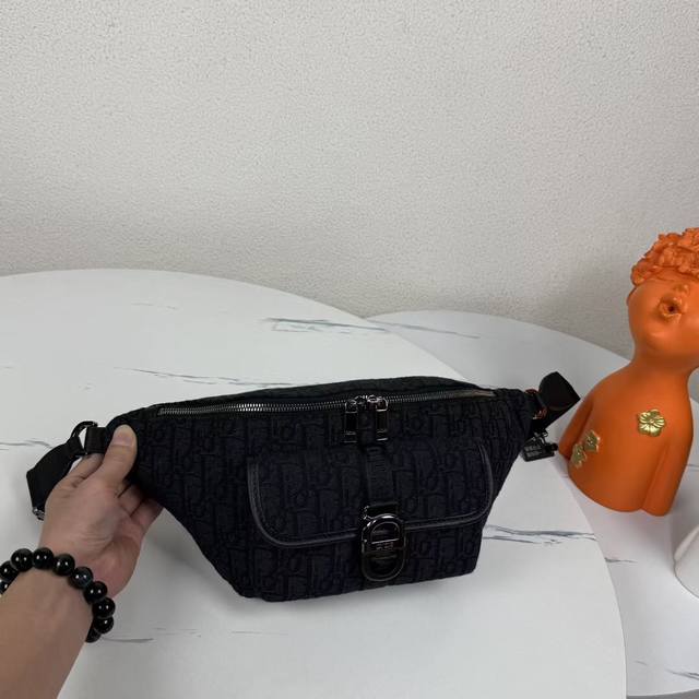 The highest-end version on the market. Compare to the original. 1:1 replica. Dior 8 belt bag. Black Oblique print fabric. Item No.: 1Eibo071Yky_H03E. This Dior 8 belt bag is a new addition to the Spring 2025 men's collection. Stylish and practical, it's crafted from black Oblique print fabric and features a front flap pocket embellished with a Dior 8 buckle. A zippered compartment holds essentials, and the adjustable leather strap allows it to be worn at the waist or across the body.