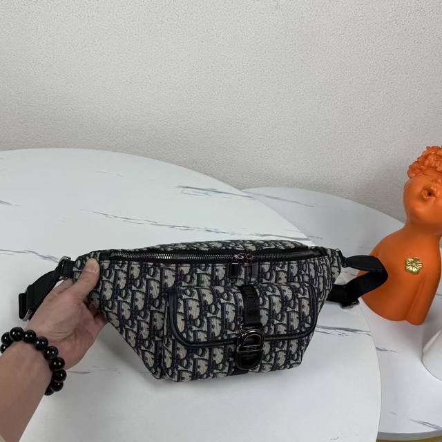The highest-end version on the market. Compare to the original. 1:1 replica. Dior 8 belt bag. Beige and black Oblique print fabric. Item No.: 1Eibo071Yky_H27E. This Dior 8 belt bag, a new addition to the Spring 2025 men's collection, is stylish and practical. Crafted from beige and black Oblique print fabric, it features a front flap pocket embellished with a Dior 8 buckle. A zippered compartment holds daily essentials, and the adjustable leather strap allows it to be worn at the waist or cross-body.