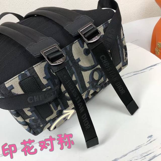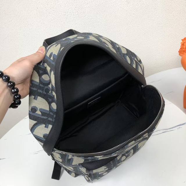 Rider backpack exudes understated beauty, reminiscent of a classic school backpack. Crafted from apricot Maxidioroblique jacquard, it features a new interpretation of the House of Dior's signature motif, accented with smooth calfskin detailing and the signature Dior motif on the front. Details such as a two-way zipper closure, a large front zippered pocket, and an adjustable padded strap complete the perfect everyday piece.