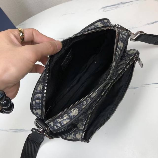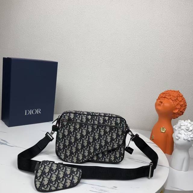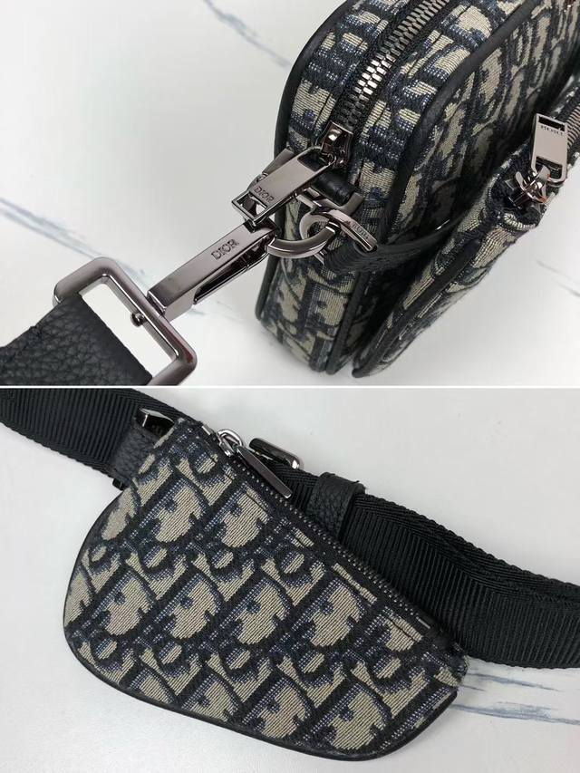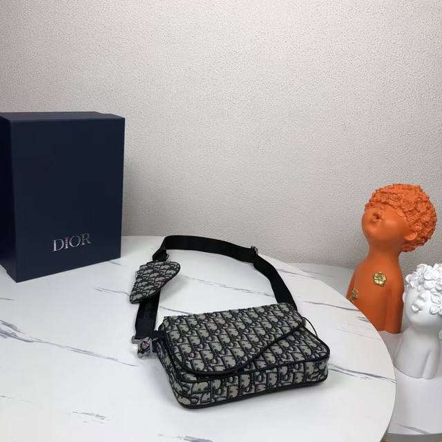 in beige and black Dioroblique jacquard. Product number: 1Adpo276Yky_H27E. New for fall, this three-piece pouch is crafted from beige and black Dioroblique jacquard. This rugged yet versatile pouch features a three-in-one design, featuring a detachable front bird pocket and a detachable nano bird pocket. The detachable, adjustable shoulder strap allows for shoulder or crossbody wear.