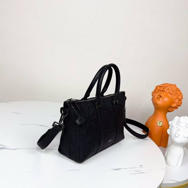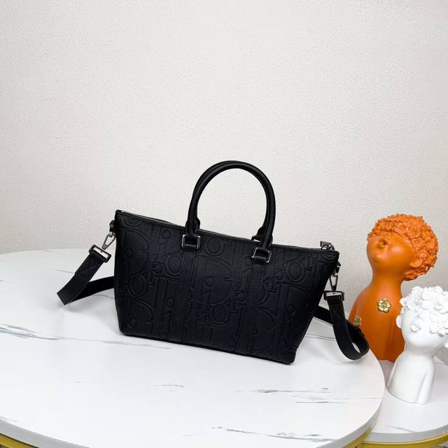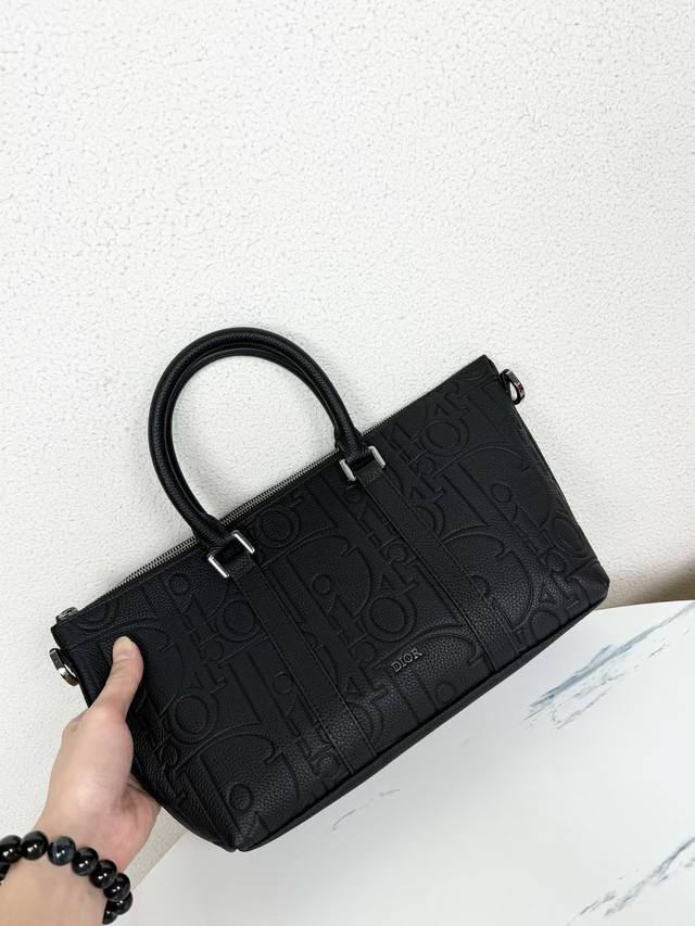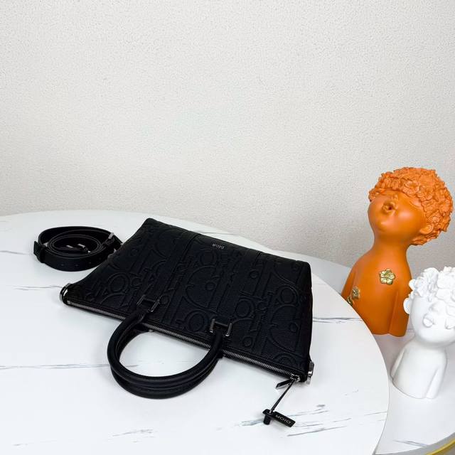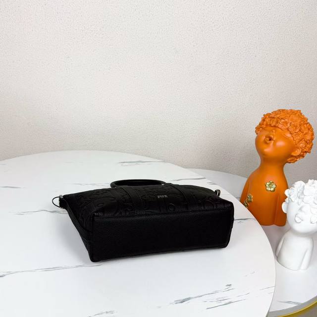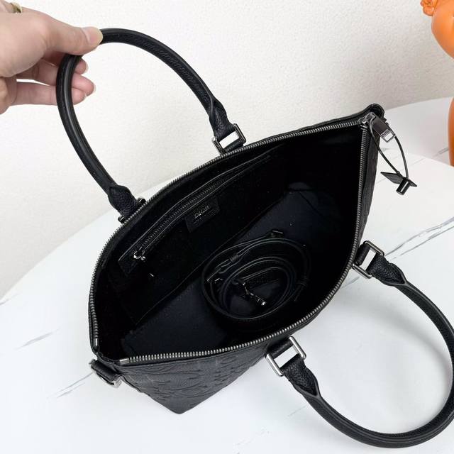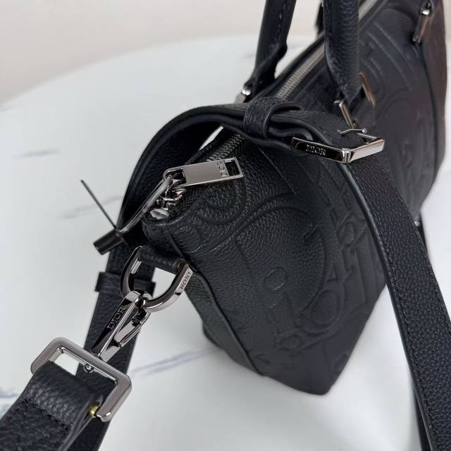 The most premium version on the market. Compare the Weekender 25 bag. Available in black Dior Gravity-effect leather and black grained calfskin. Ref. 1Espo322Llg_H00N. This Weekender 25 bag embodies classic elegance. The Dior Gravity-effect leather is embossed onto black calfskin, embellished with the Dior logo, showcasing the exquisite craftsmanship of the Dior ateliers. It features a spacious zippered compartment for everyday essentials. The bag can be carried by hand or on the shoulder thanks to its adjustable and detachable shoulder strap and top leather handle.