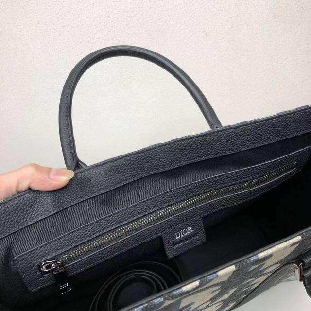 . This East-West bag, a new addition to the Spring 2024 men's collection, embodies timeless elegance. Crafted from apricot oversized Oblique print fabric, it's enhanced with the Dior logo, a fresh take on the classic Dior pattern. Spacious compartments easily accommodate everyday essentials. The leather handles and removable, adjustable shoulder strap allow it to be carried by hand, on the shoulder, or across the body.