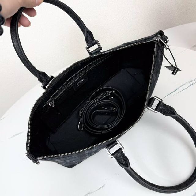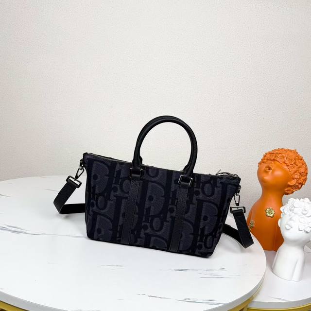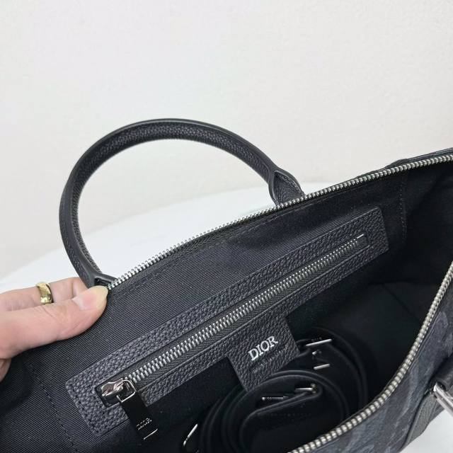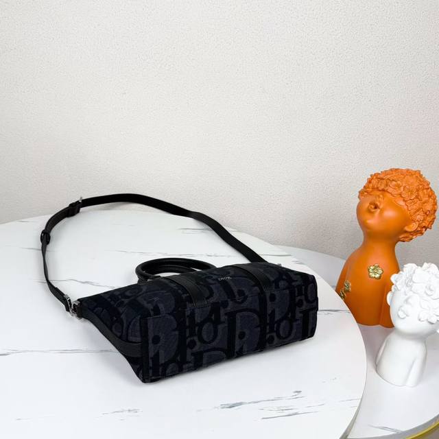 This Weekender 25 handbag embodies timeless elegance. Crafted from black oversized Oblique print fabric, it features a new interpretation of the classic Dior pattern, enhanced by the Dior logo. It features a spacious main zippered compartment for everyday essentials. The adjustable and detachable shoulder strap and leather top handle allow it to be carried by hand or on the shoulder.