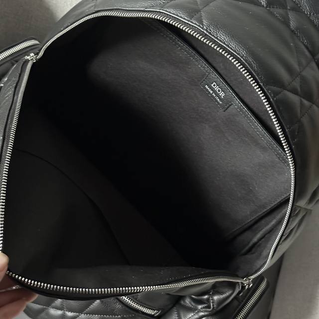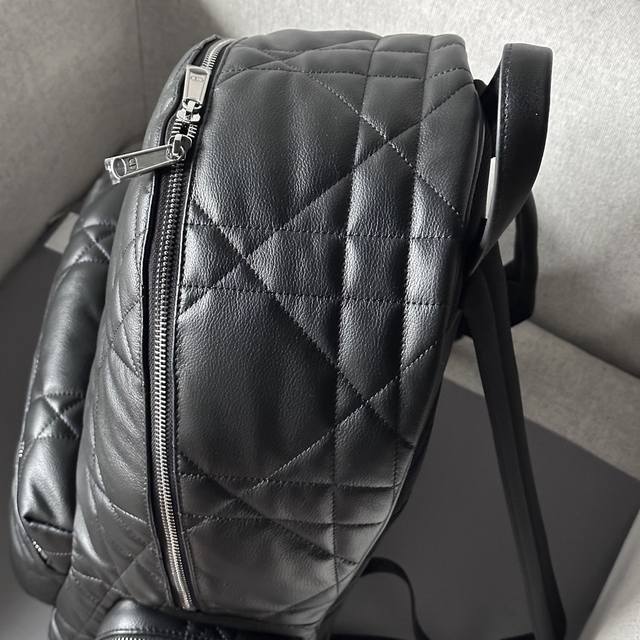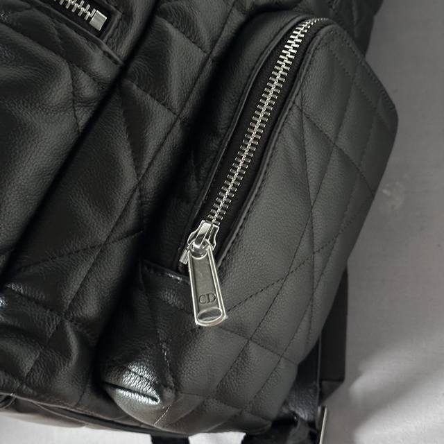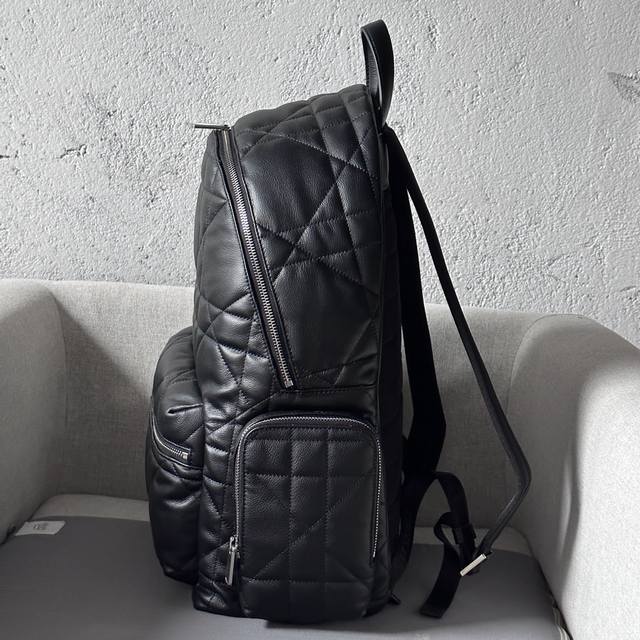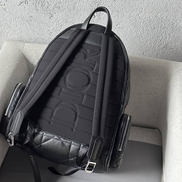 This backpack is a new addition to the 2024 Winter Men's Collection, seamlessly blending modern style with haute couture spirit for a striking and fashionable look. Crafted from black calfskin and other premium materials, it features a cannage pattern, a fresh interpretation of the classic Dior motif, and is elevated by the Dior logo on the front. It includes a spacious zippered compartment for everyday essentials, while the front and side zippered pockets offer easy access to a wallet, keys, earphones, or a mobile phone. Practical and versatile, it's the perfect finishing touch to any outfit. DDD Model 9901 DDD Size 41.5-46-22 DDD Body: Cowhide leather, fabric lining: fabric, cowhide leather zippered main compartment DDD Interior flat laptop compartment DDD Front zippered pocket DDD Two side zippered pockets Leather top handle Adjustable padded shoulder strap DDD Padded mesh fabric back with Dior logo Front adorned with vintage silver-finish brass Dior logo Interior embossed Dior logo Includes dust bag DDD