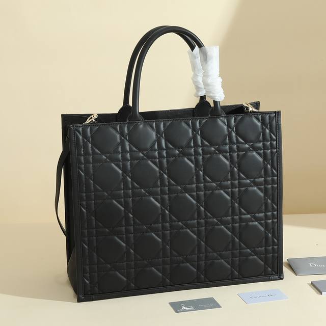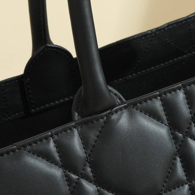 This Dior handbag is a newly launched key item from Dior, making a stunning debut in the Fall/Winter 2023 ready-to-wear collection, showcasing a modern and elegant practical design. Crafted from black calfskin leather, it features a three-dimensional cannage pattern, a fresh interpretation of Dior's classic motif. The spacious interior includes four slip pockets and one zippered pocket, providing ample storage for everyday essentials. The medium size comes with a leather shoulder strap, allowing for shoulder or hand carry, making it ideal for everyday use. Features include: Detachable, adjustable leather shoulder strap; Interior zippered pocket; Two interior slip pockets; Includes dust bag. Code: M1323Owhp_M900; Dimensions: 42