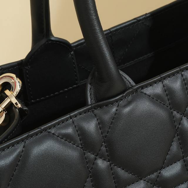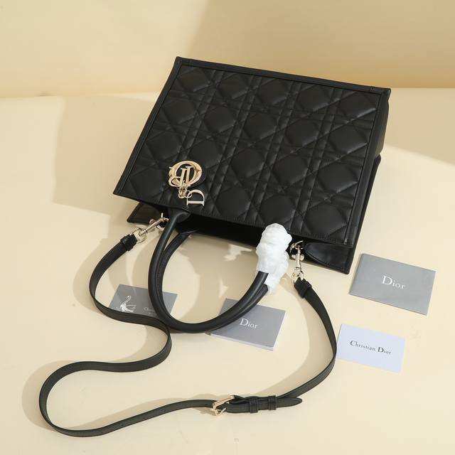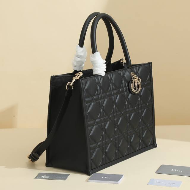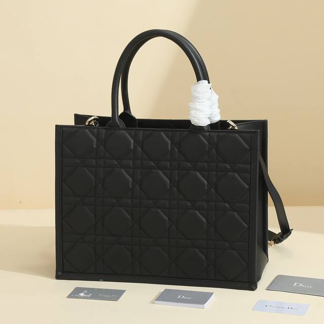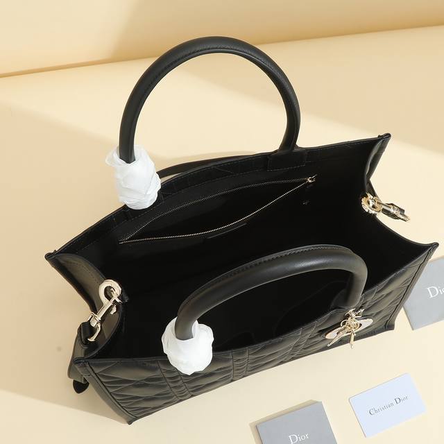 This Dior handbag is a newly launched key item from Dior, making a stunning debut in the Fall/Winter 2023 ready-to-wear collection, showcasing a modern and elegant practical design. Crafted from black calfskin leather, it features a three-dimensional cannage pattern, a fresh interpretation of Dior's classic motif. The spacious interior includes four slip pockets and one zippered pocket, providing ample storage for everyday essentials. The medium size comes with a leather shoulder strap, allowing for shoulder or hand carry, making it ideal for everyday use. Features include: Detachable, adjustable leather shoulder strap; Interior zippered pocket; Two interior slip pockets; Includes dust bag. Code: M1324Owhp_M; Dimensions: 36.5