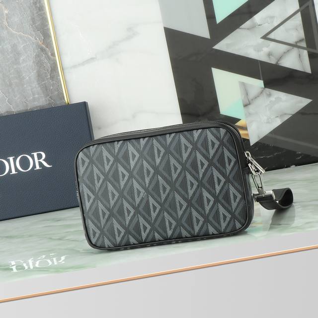 This Dior Lingot handbag is a new addition to this season's collection. Its distinctive structure is crafted from Dior black canvas with the Cd Diamond pattern. It features a wide zippered compartment, a front zippered pocket, and a detachable leather strap. The style is novel, unique, charming, versatile, casual, and practical. Model: 2Esca340Yse_H05E. The Cd Diamond pattern, designed by Marc Bohan in 1974, reinterprets the initial "Cd" with three-dimensional diamond lines. It is made of cotton canvas. The interior is decorated with the "Dior" embossed logo. It features a two-way brass zipper closure, a detachable leather strap, 6 internal card slots, and a front zippered pocket. Dimensions: 24 x 15.5 x 5.5 cm.