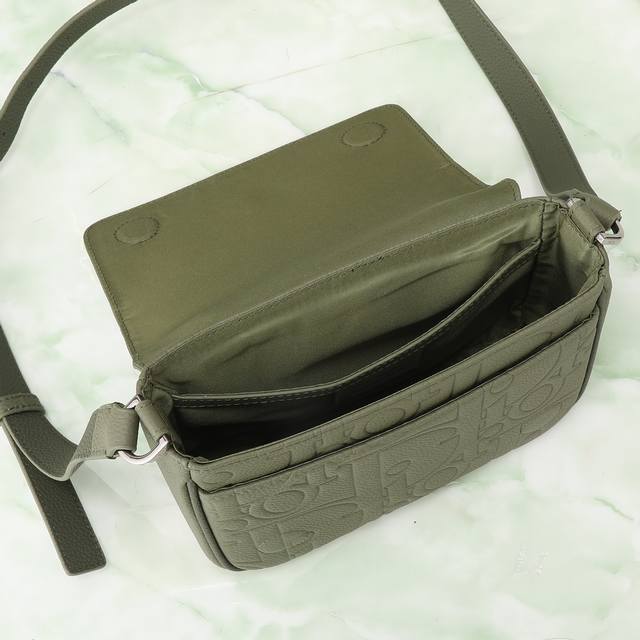 This Messenger Bag Is A New Addition To The 2024 Fall Men's Collection, Featuring A Flap Closure And Showcasing A Practical Yet Classic Design. The Dior Gravity Print Effect Leather Is Crafted Using An Embossed Technique To Elegantly Showcase The Classic Pattern On Khaki-Colored Cowhide Leather,