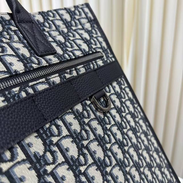 This premium Safari bag, a new arrival for Fall 2023, combines elegance with practical functionality. Crafted from beige Oblique print fabric, it's enhanced with tonal grained calfskin trims and finished with the Dior signature on the front. Spacious compartments and a front zippered pocket provide ample storage for everyday essentials, while a leather strap and D-ring provide ample storage for accessories or an AirPods Pro case. A leather top handle adds a touch of sophistication, allowing for hand or shoulder carry.