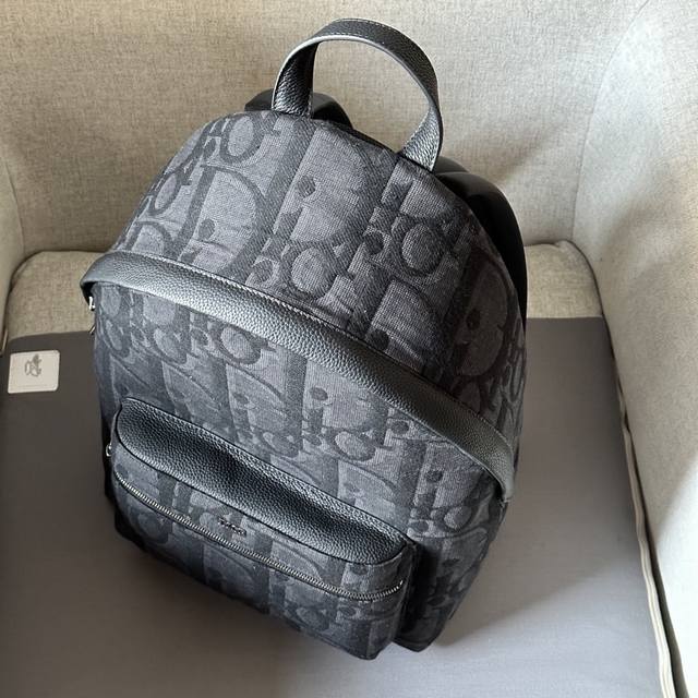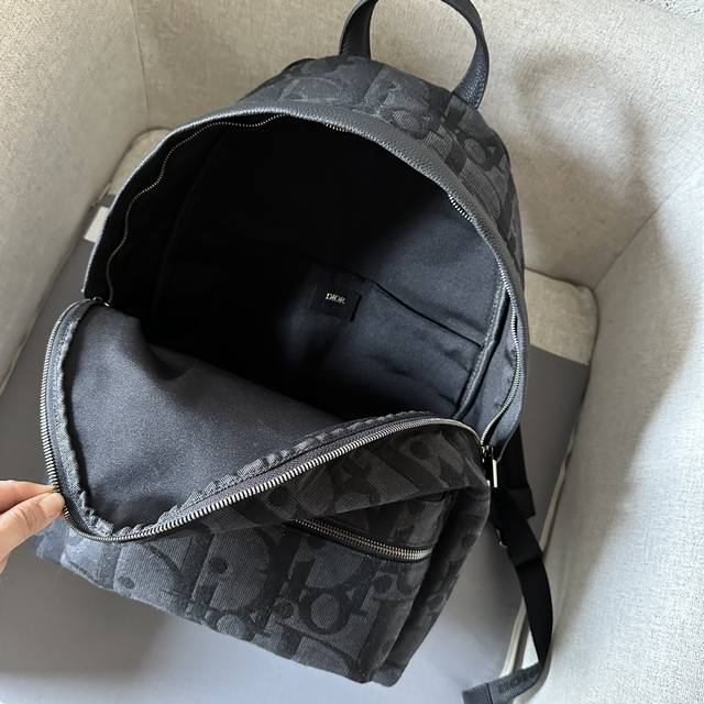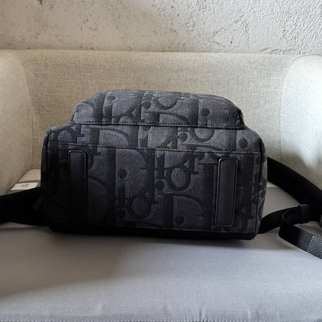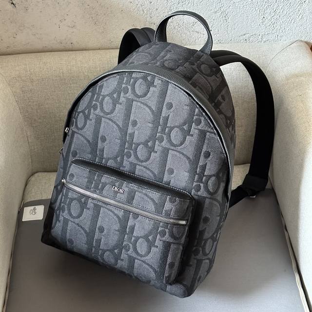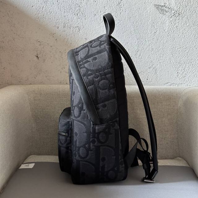 This Rider backpack boasts a minimalist style, its classic preppy design exuding vitality. Crafted from black oversized Oblique print fabric, it reinterprets the classic Dior pattern, adorned with smooth calfskin details and a prominent Dior logo on the front for added sophistication. Continuing the classic design, it features exquisite details such as a two-way zip closure, a large front zip pocket, and adjustable padded shoulder straps, making it an ideal choice for everyday wear. DDD Black oversized Oblique print DDD Front metal-coated brass Dior logo with embossed Dior logo on the inside Two-way zip closure Adjustable padded shoulder strap Leather top handle DDD Back of the bag reinforced with quilted technical knit fabric and adorned with the Dior logo Front zip pocket and internal slip pocket Includes dust bag Made in Italy DDD Model 8962 DDD Dimensions 30-42-15 DDD