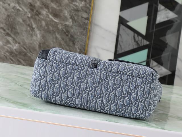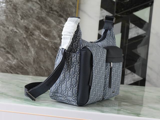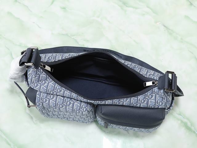 This Rider Soft bag, a new addition to the Fall 2025 men's collection, combines practical functionality with a stylish design. Crafted from materials like blue Oblique print fabric, it's accented with tonal grained cowhide leather details and the Dior logo. It features a zippered compartment, two front zippered pockets, and two side slip pockets for storing everyday essentials. This practical medium size features an adjustable shoulder strap for shoulder or crossbody wear.