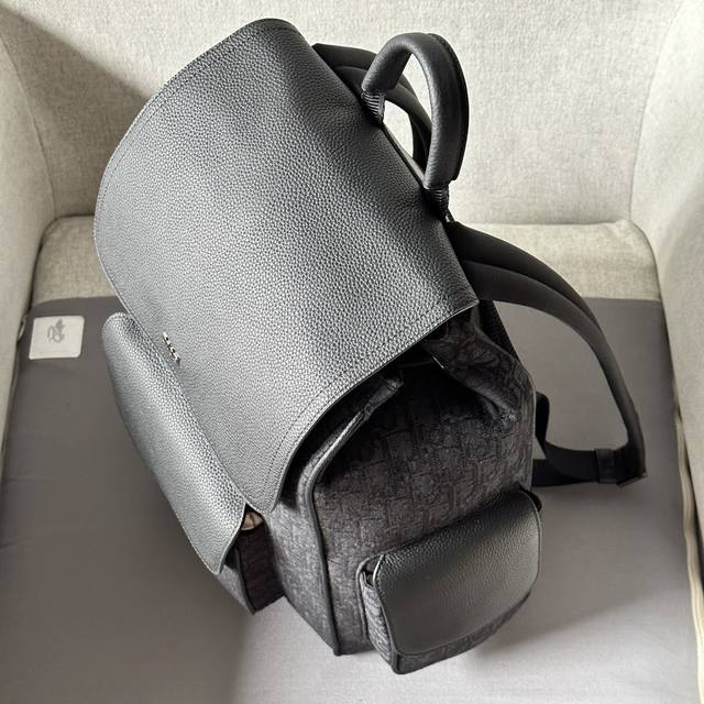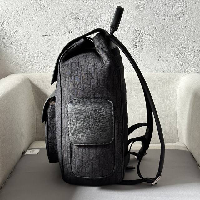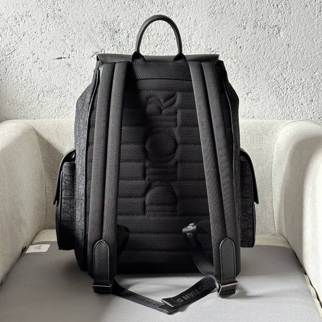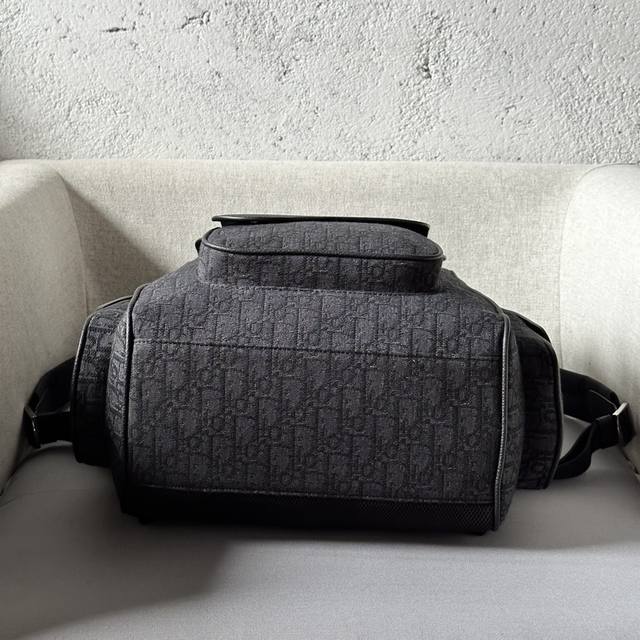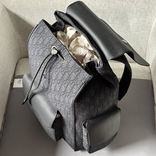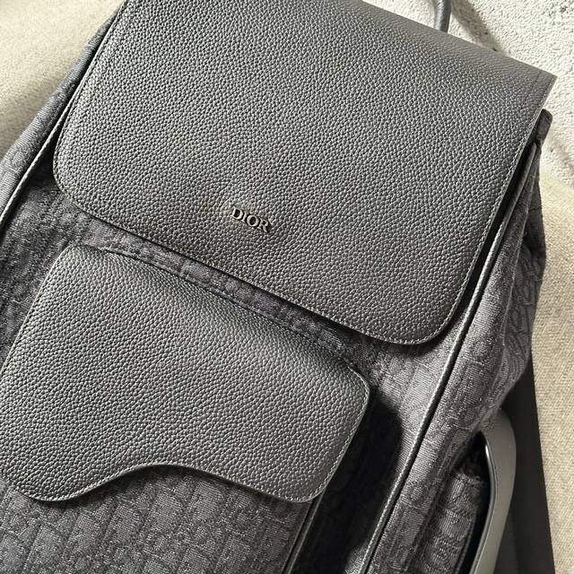 This saddle backpack features a stylish, original design that highlights the saddle style. Crafted from black Oblique printed fabric and accented with black grained calfskin leather, it's adorned with the Dior logo on the front for added sophistication. Spaciously designed, it includes compartments for everyday essentials, a front flap saddle pocket, and two side flap pockets for storing wallets, keys, earphones, or phones. Practical and versatile, it's the perfect finishing touch to any outfit. Model 2002 Sizes 26-41.5-17.5 Black Oblique Print Black Grain Calfskin Leather Front Metallic Brass Dior Logo Interior Embossed Dior Logo Flap and Drawstring Closure Adjustable Padded Nylon Shoulder Straps Top Leather Handle Padded Mesh Back with Dior Logo Front and Side Flap Pockets Interior Laptop Compartment Includes Dust Bag Made in Italy