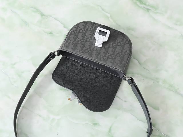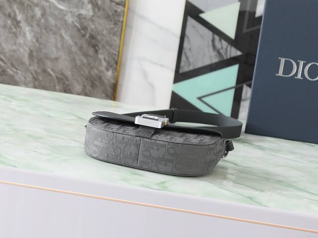 This saddle clutch with a shoulder strap is a new piece from the Spring 2023 menswear collection. Its stylish design exudes refined elegance, elevating the classic saddle series. Crafted from jacquard fabric with metallic stitching and an Oblique print, it features a dark grey calfskin saddle flap adorned with a Christian Dior logo aluminum buckle. It comes with a detachable, adjustable leather shoulder strap for hand-carrying, shoulder-carrying, or crossbody wear. Metallic Oblique Print Dark Grey Grained Calfskin Interior with Dior Logo Flap Closure with a Christian Dior Logo and Cd Initials Detachable, Adjustable Leather Shoulder Strap Model: 435 Charcoal Fabric Dimensions: 19.5 x 13 x 4.3 cm