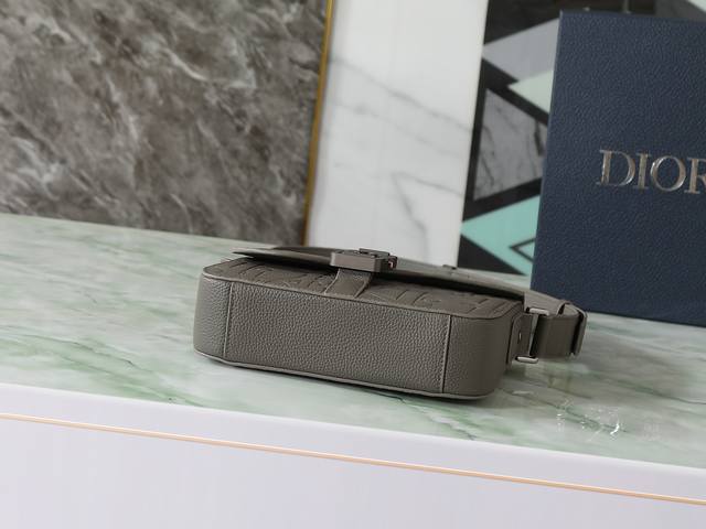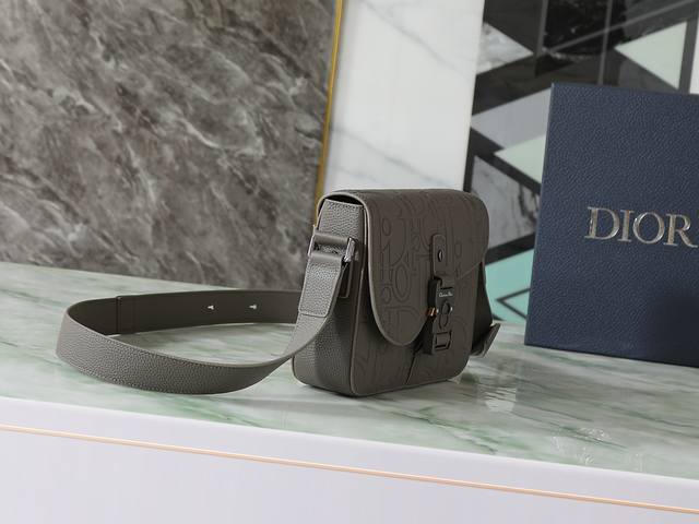 This saddle flap messenger bag is stylish and sophisticated. The Dior Gravity printed leather features an embossed pattern that exquisitely presents the classic Dior pattern on grey calfskin, showcasing the craftsmanship of the Dior ateliers. The tonal grained calfskin saddle flap with aluminum hardware adds a touch of refinement. The small size offers ample interior space with a back slip pocket for various everyday essentials. It comes with an adjustable leather shoulder strap for shoulder or crossbody wear. Model: 1Adpo049Llg_H800 Dimensions: 23 x 17.5 x 6 cm (L x H x W) Main compartment can hold various phone models. Body: Calfskin leather Lining: Technical fabric, cotton, calfskin leather Main compartment with flap and aluminum hardware Interior slip pocket Back slip pocket Adjustable leather shoulder strap Interior embossed Dior logo Includes dust bag