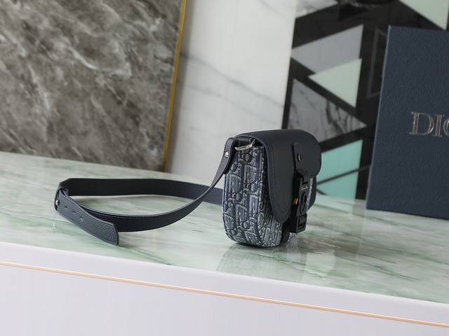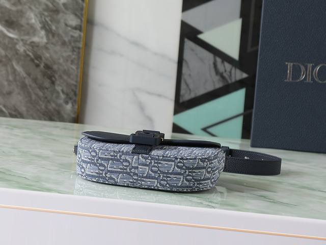 This Saddle messenger bag features a sleek design and a flap, elevating the Saddle collection. Crafted from materials like blue Oblique print fabric, it features a tonal grained calfskin saddle flap embellished with a Christian Dior aluminum buckle. This miniature style features an adjustable and detachable leather shoulder strap for hand, shoulder, or crossbody wear. Model: 2Adca435Yks_H04 Light Blue Dimensions: 20 x 13.5 x 5.5 cm (L x H x W) Holds two phones Body: Calfskin, cotton, technical fabric Lining: Technical fabric, cotton, calfskin Interior slip pocket Back slip pocket Adjustable and detachable leather shoulder strap Metal-plated copper alloy Dior logo on the front Debossed Dior signature on the interior Dust bag included