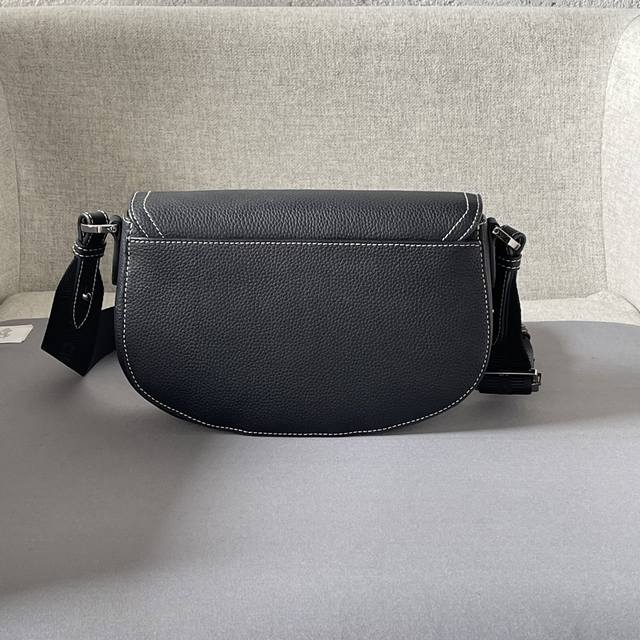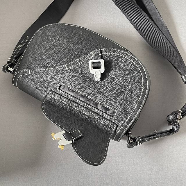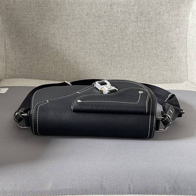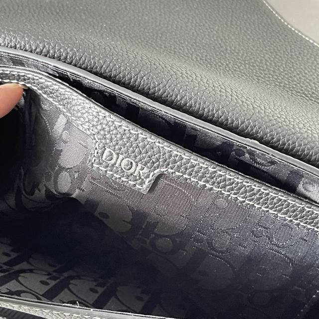 This Saddle Messenger Bag is a new addition to the Fall 2024 menswear collection, exquisitely stylish. Crafted from black grained calfskin leather, it features a saddle flap and an aluminum buckle for added sophistication. The spacious interior includes a slip pocket for everyday essentials and comes with an adjustable Christian Dior nylon jacquard shoulder strap for shoulder or crossbody wear. Features include: Nylon interior; Model 3003; Dimensions 24-16.5-5.5; Main compartment with magnetic saddle flap; Front saddle flap patch pocket with Cd logo buckle; Interior slip pocket; Adjustable Christian Dior logo nylon jacquard shoulder strap with Dior embossed logo on the inside; Includes dust bag; Made in Italy.