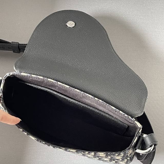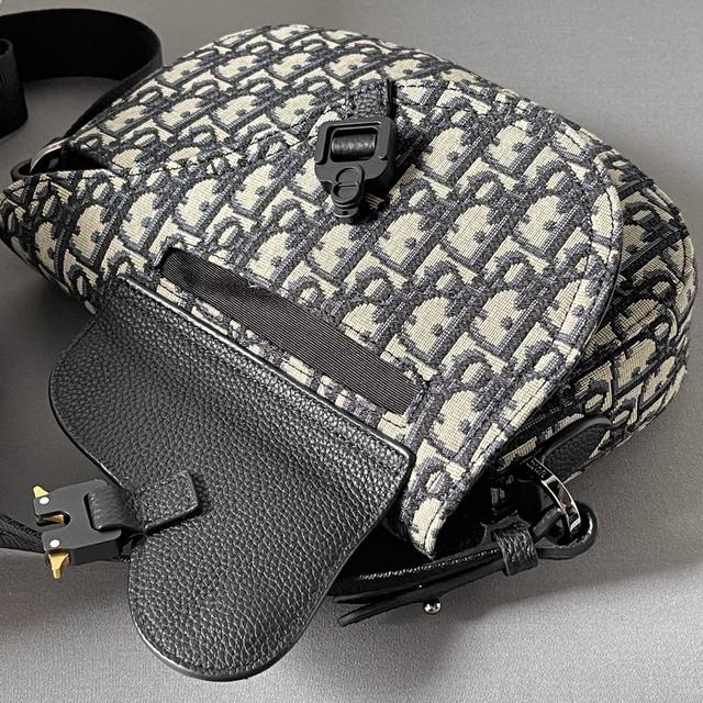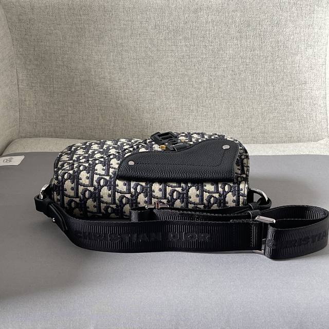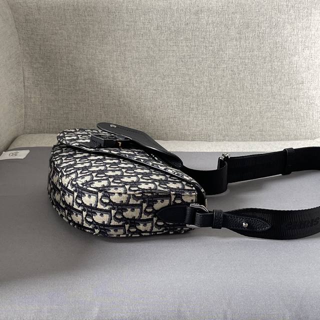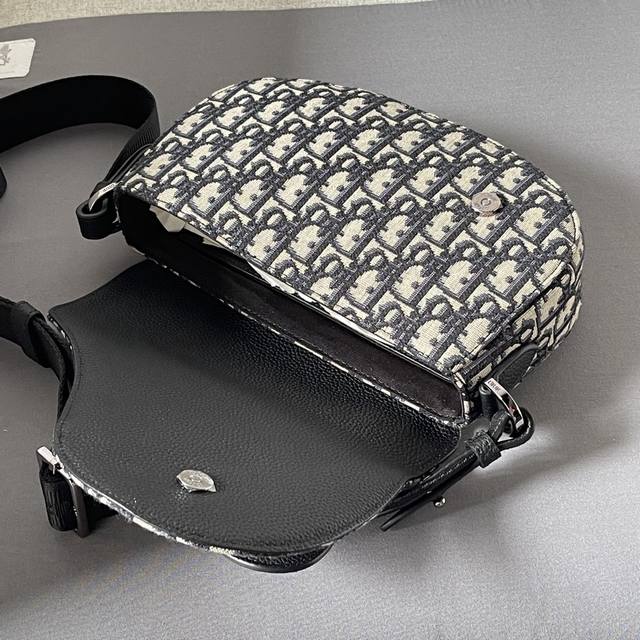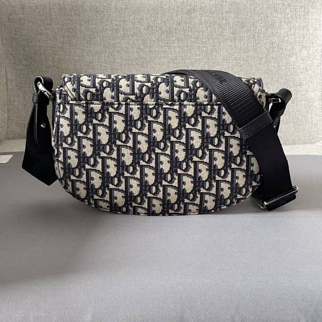 This saddle messenger bag is a new addition to the Fall 2024 menswear collection, exquisitely stylish. Crafted from beige and black Oblique printed fabric, it features a black grained calfskin saddle flap and is accented with an aluminum buckle for added sophistication. The spacious interior includes a slip pocket for everyday essentials and comes with an adjustable Christian Dior nylon jacquard shoulder strap for shoulder or crossbody wear. Model 3002 Dimensions 24-16.5-5.5 Nylon interior Main compartment with magnetic saddle flap Front saddle flap patch pocket with Cd logo buckle Interior slip pocket Adjustable Christian Dior logo nylon jacquard shoulder strap with Dior embossed logo on the inside Includes dust bag Made in Italy