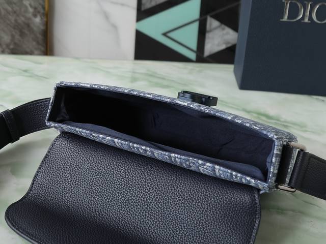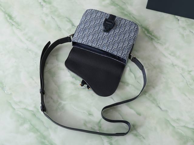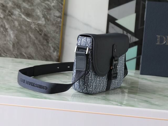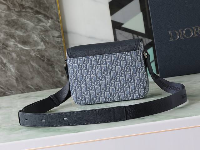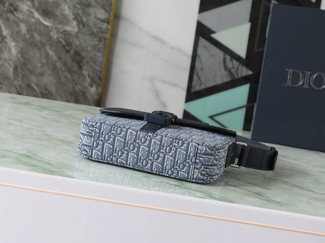 This saddle messenger bag is exquisite and stylish. Crafted from materials such as blue Oblique print fabric, it is decorated with a saddle flap in grained cowhide leather in the same tone and embellished with aluminum buckles to enhance the style. The interior has spacious compartments and a back slip pocket to store various daily necessities. The small style is equipped with an adjustable leather and Christian Dior logo jacquard shoulder strap, which can be carried on the shoulder or crossbody.