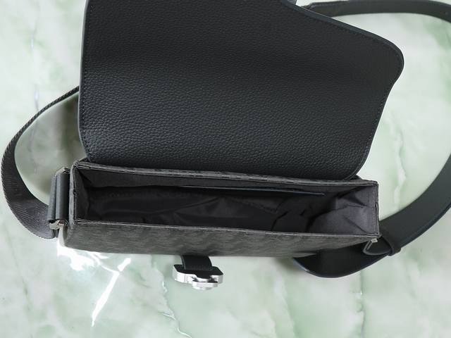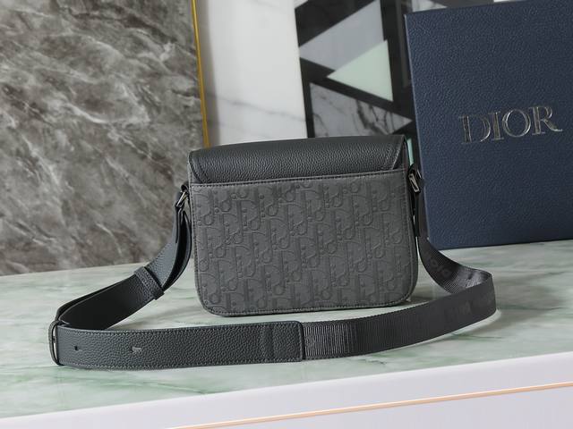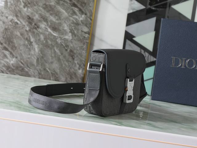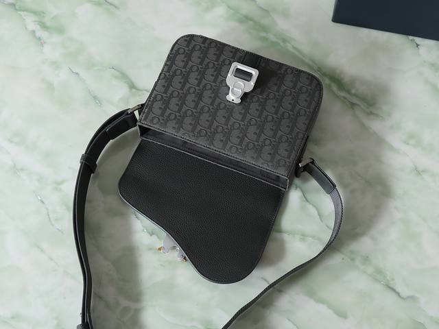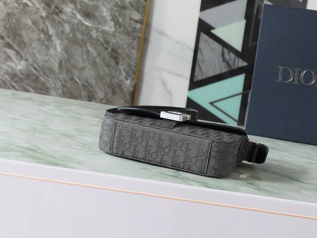 This saddle messenger bag is exquisitely stylish. Crafted from charcoal grey Oblique printed canvas with a refined satin finish, it features a saddle flap in charcoal grey grained calfskin leather and a contrasting aluminum buckle closure. The spacious interior includes a back slip pocket for everyday essentials. The small size comes with an adjustable leather and Christian Dior logo jacquard shoulder strap for shoulder or crossbody wear. Model: 1Adpo049Jcl_H870