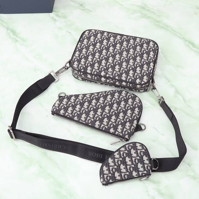 This Saddle Three-Piece Handbag Is A New Addition To The 2023 Fall Men's Collection, Meticulously Crafted From Beige Oblique Printed Fabric, Bold And Versatile. The Three-In-One Design Features A Zippered Compartment, Highlighting The Front Saddle-Shaped Clutch And Nano