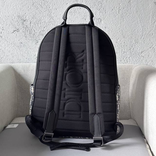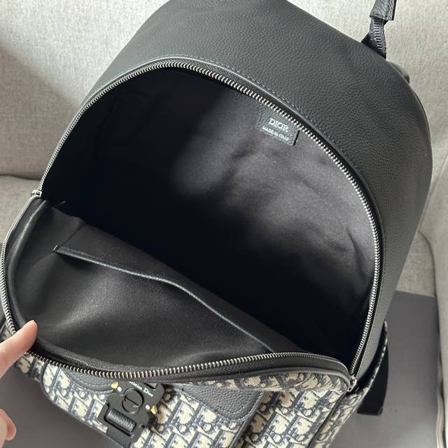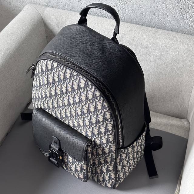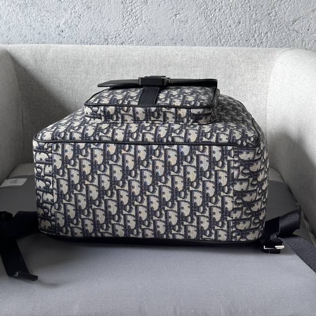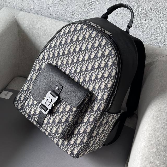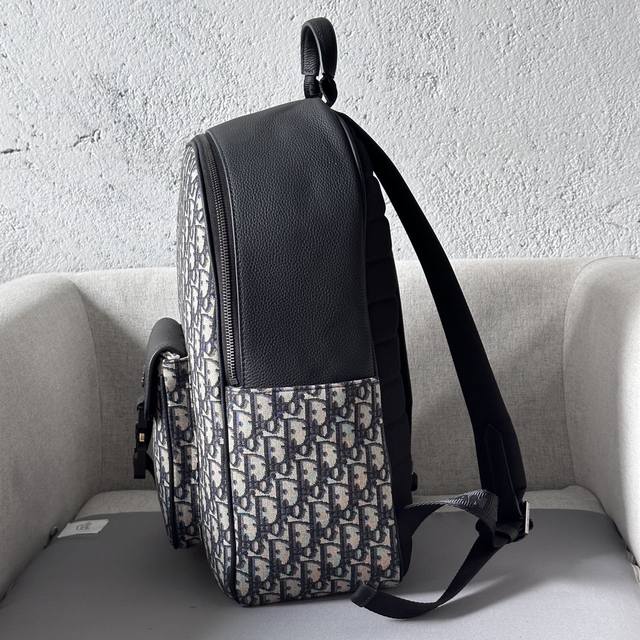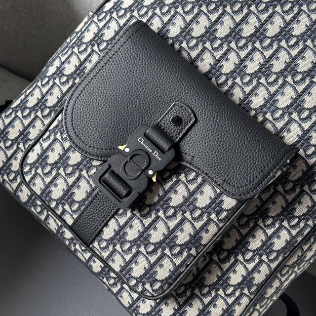 This saddle-patterned backpack is a new addition to the 2024 Winter Men's Collection, featuring a stylish original design that highlights the saddle style. Crafted from beige and black Oblique printed fabric, it's finished with black grained calfskin leather details. Spacious and compact, it includes a single compartment for everyday essentials, and a front saddle flap pocket with a Christian Dior logo buckle for easy access to a wallet, keys, earphones, or phone. Practical and versatile, it's the perfect finishing touch to any outfit. DDD Model 8969 DDD Size 33-43.5-19.5 DDD Body: Cotton, technical fabric and cowhide leather Lining: Technical fabric, cowhide leather Zippered main compartment DDD Interior flat laptop compartment DDD Front flap pocket with Christian Dior logo buckle Two side slip pockets Leather top handle Adjustable padded shoulder strap DDD Back padded mesh fabric with Dior logo Interior Dior embossed logo Includes dust bag DDD